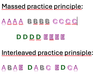 The image to the left visualizes the difference between massed learning practice and interleaved learning practice