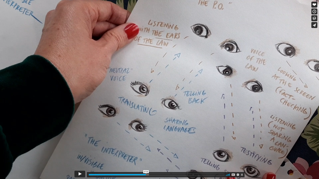 In practice, the translatress’ research concomitantly moves through three ‟translation zones:ˮ a textual and pedagogical one, whereby engaging — often collectively — with translation problems opens up different ways of ‟unlearning with othersˮ (Azoulay 2019) ; an institutional one, where interpreters discuss the political and affective role of translation within the ecosystem of asylum rights ; and an editorial one, with Qalqalah قلقلة, an editorial and curatorial platform dedicated to the production, translation and circulation of artistic, theoretical and literary research in three languages — French, Arabic and English. In these three contexts, (un)translating involves affective modes of listening (Campt 2017) and the ethical necessity of ‟performing witnessˮ (Musser 2018) in the words of others, with others and ‟at the risk of othersˮ (Stengers 2021).