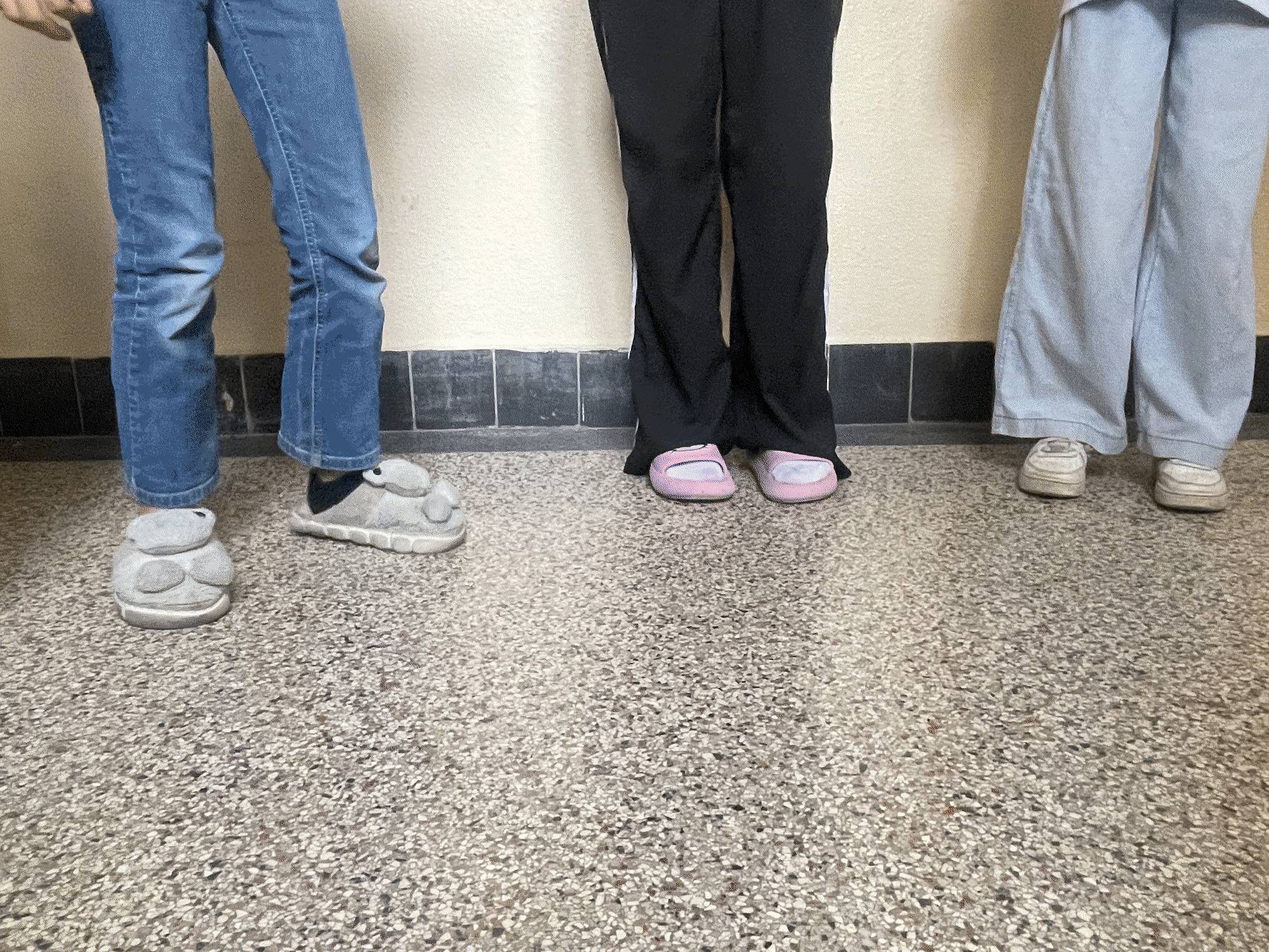 This sub-project by Leah, Lena, Lara, Fia, Mia, Sophie and Jelizaveta Vovka always took place in the hallway, their chosen working space, separate from the main laboratory. No matter what form their activity took, the hallway remained a constant: a place where they could move, film, and create on their own terms. Their practice did not follow a single theme or thread; instead, it unfolded through moments of curiosity, movement, and spontaneous collaboration. Sometimes they danced, sometimes recorded videos, sometimes simply explored what could happen in the space between classrooms.