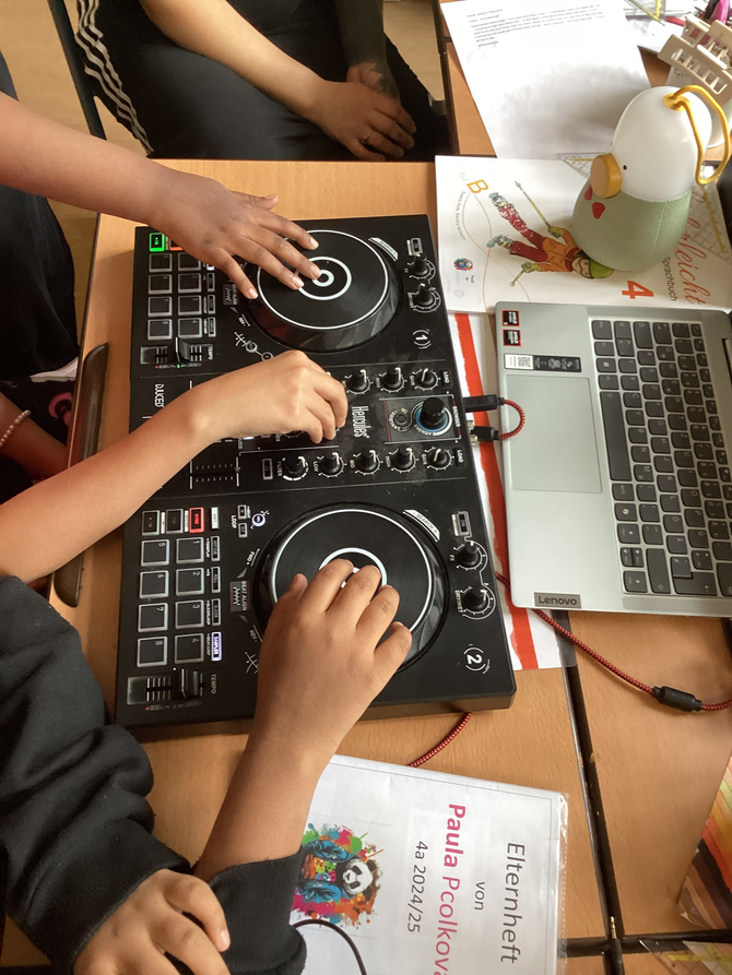 In the final phase, the group explored the DJ program "DJUCED" with a DJ mixing board from Hercules, using it to search, play, and experiment with a wide range of songs. They especially enjoyed discovering music similar to the one they listen to at home.
