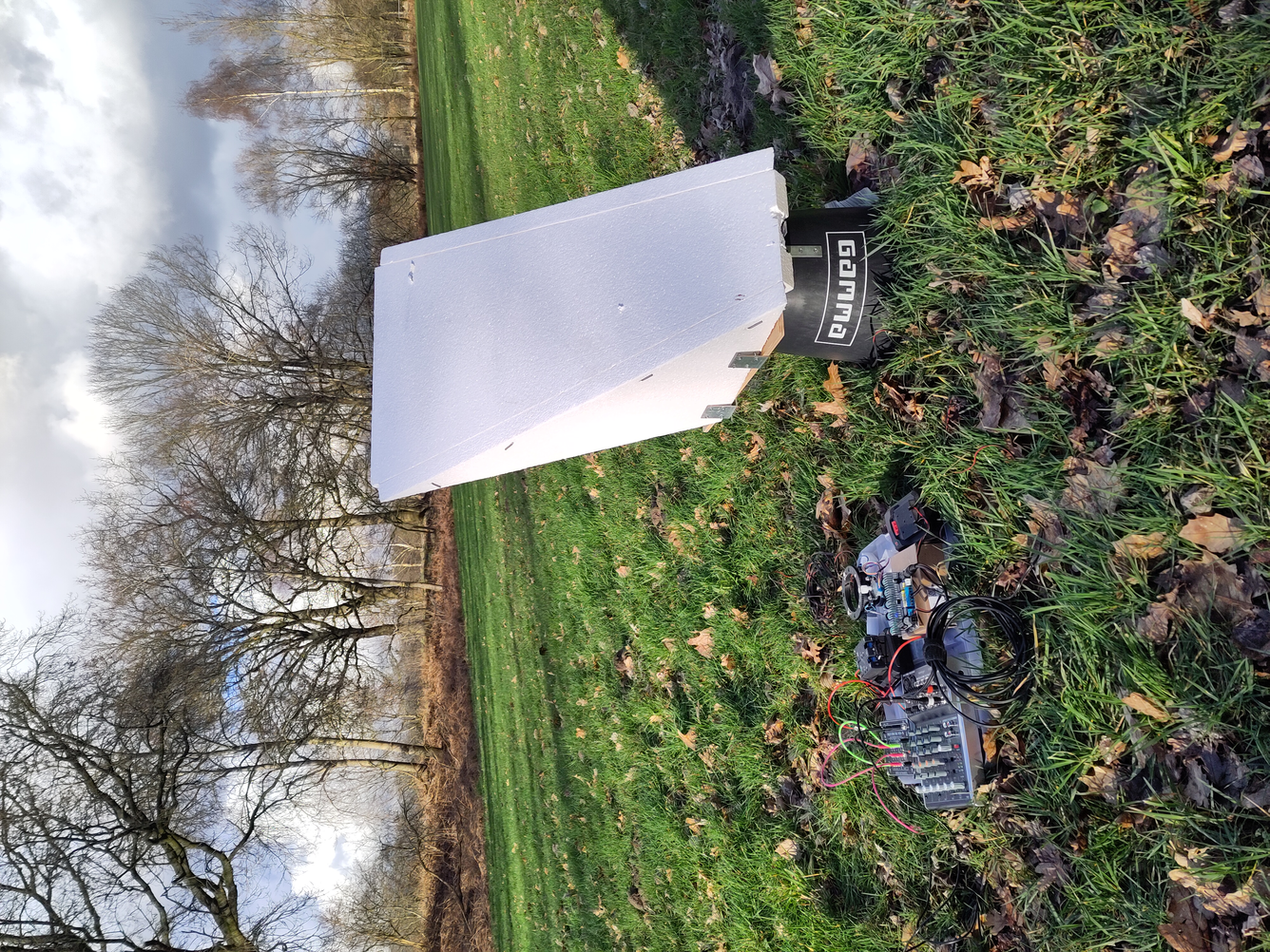 Conclusion of the day: allmost all sound is lost outside without any nearby reflectors. And the use of a (moving) reflector has a dramatic result. Which, for us, is good news.