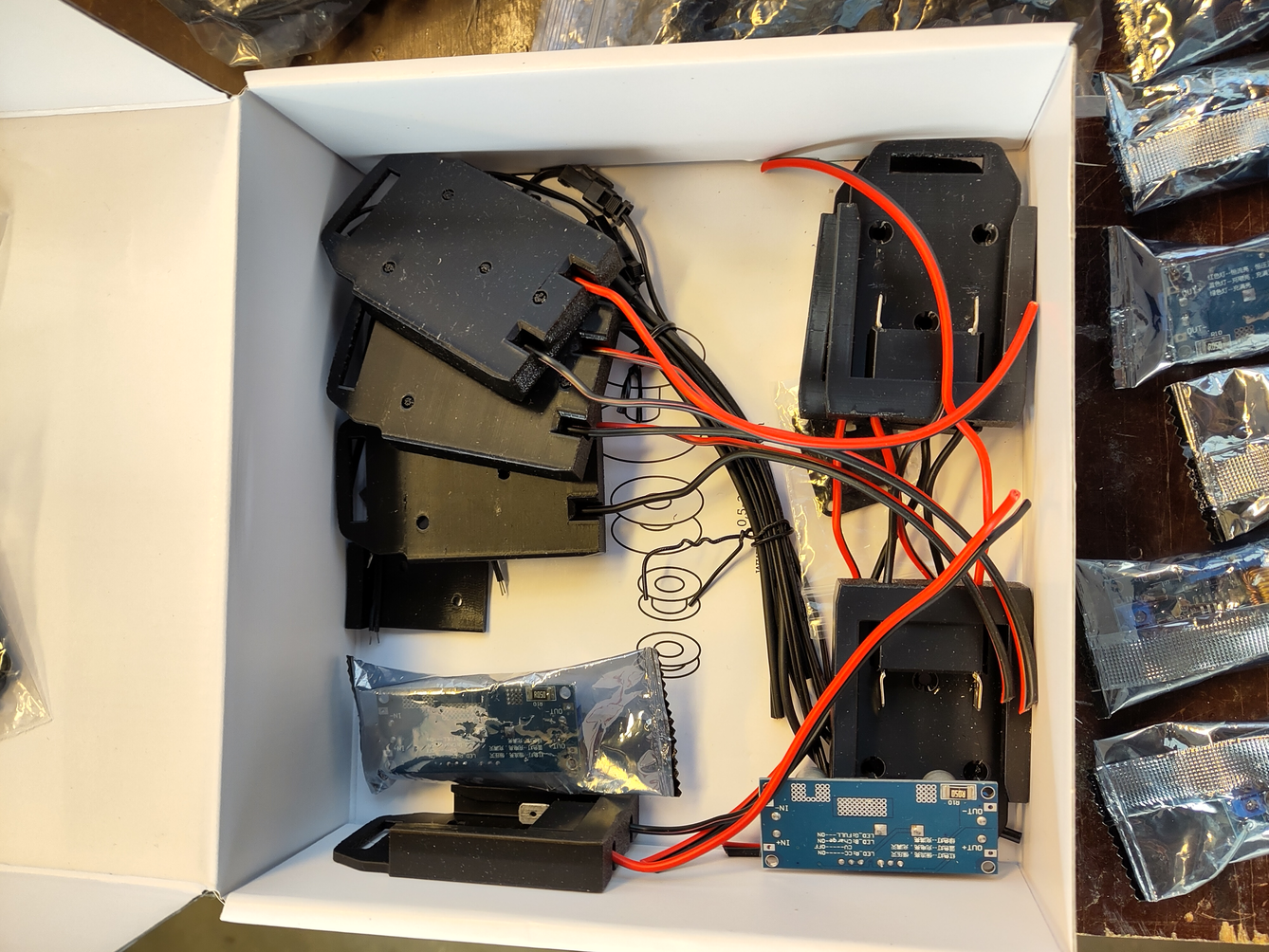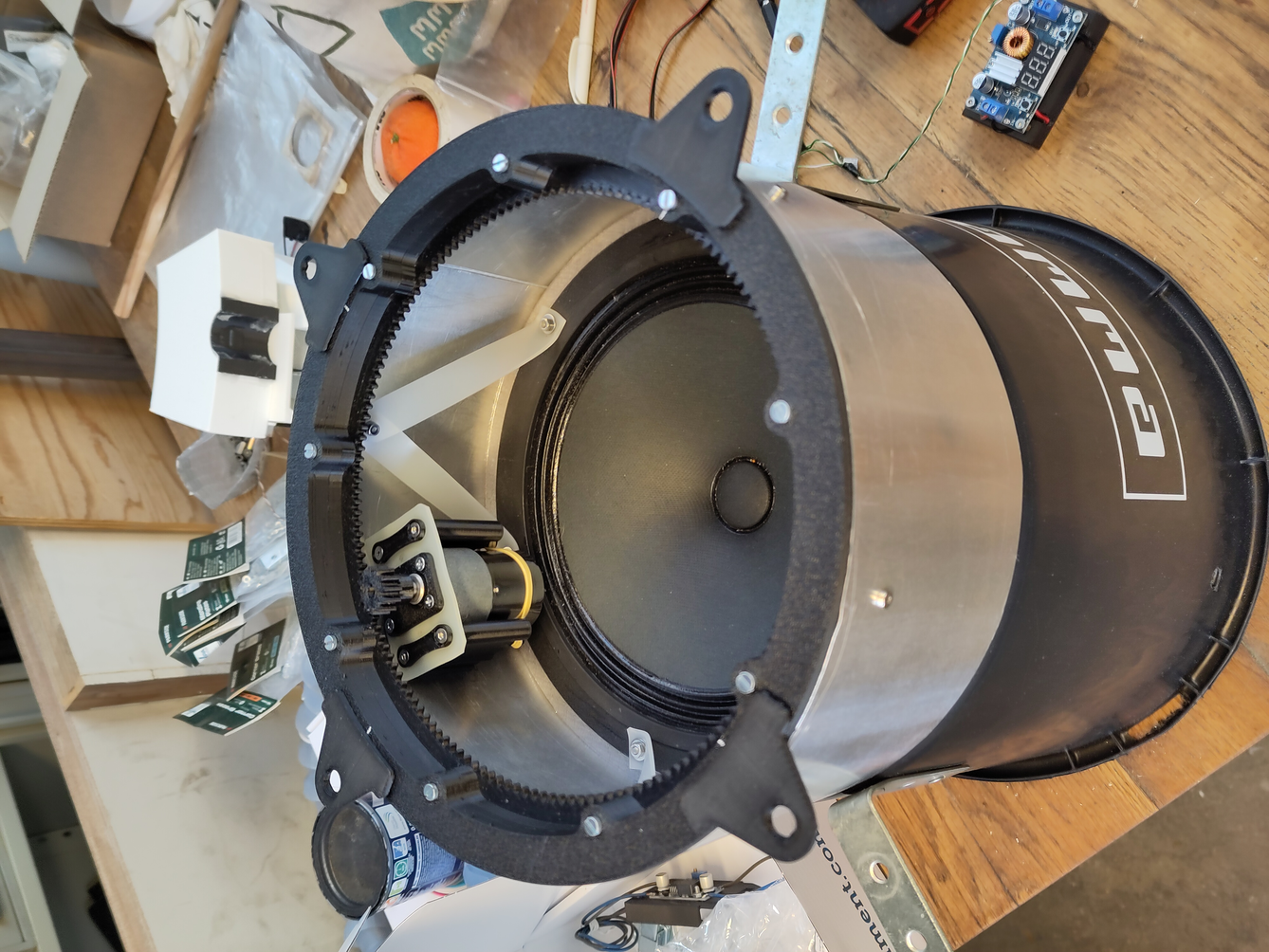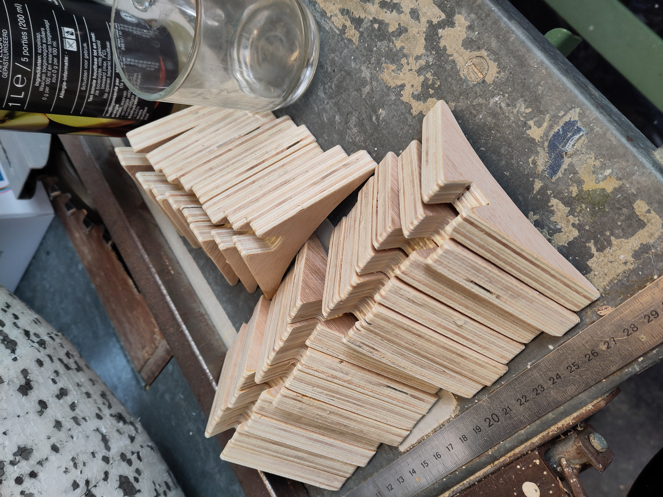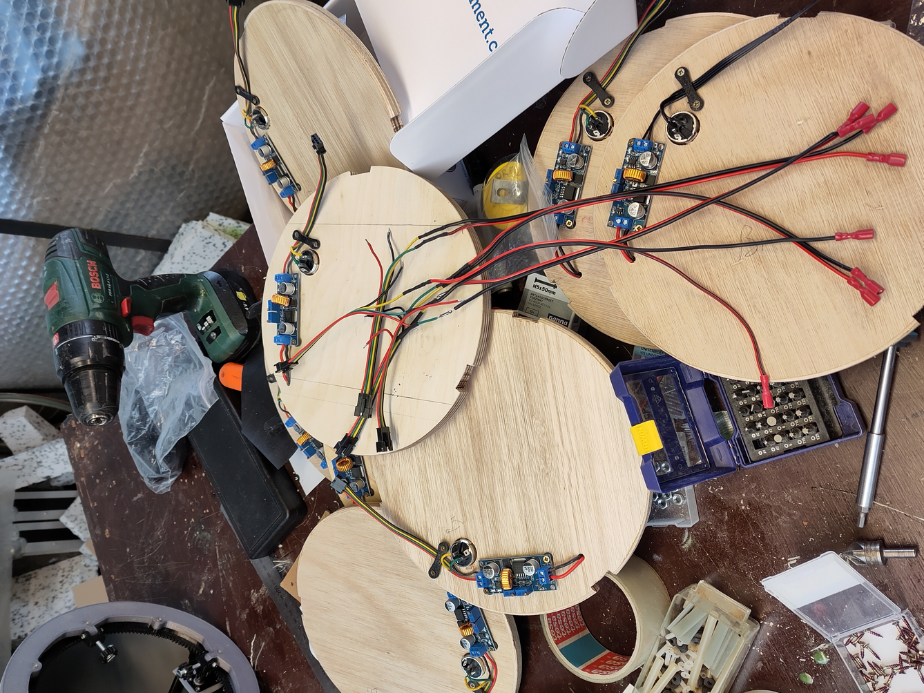Based on this design we built the first speaker, that I tested outside. It worked remarkebly well, we only did some minor adjustments. So soon after the first one we built seven more...
