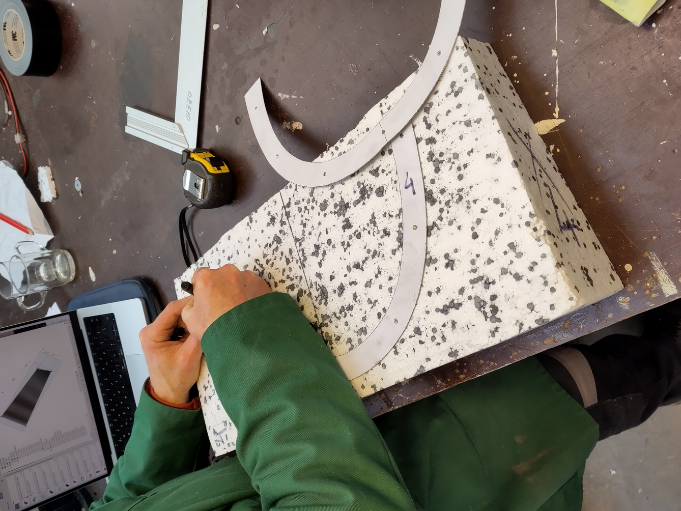 The shell consists of nine different segments. So we had to saw nine different moulds out of aluminium.