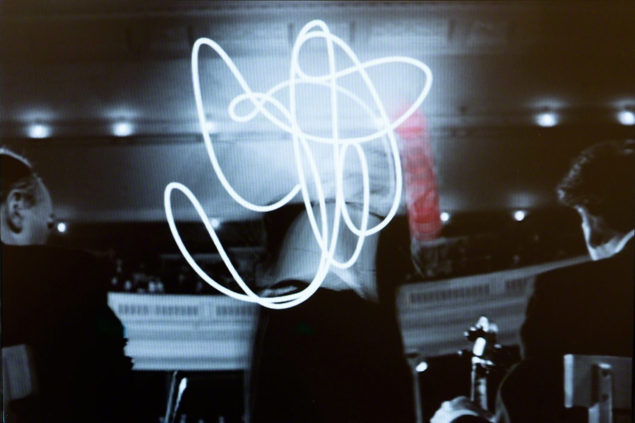 One could argue that the musician must navigate three distinct levels of information in this context. First, the film footage, which invites the musician to create a soundtrack, illustrating and responding to the silent film. Second, the graphical elements, whose grammar of dots and lines evokes traditional musical notation and encourages the exploration of a more musical logic. Finally, the musician must listen to and interact with the other performers on stage, balancing these layers in real-time.