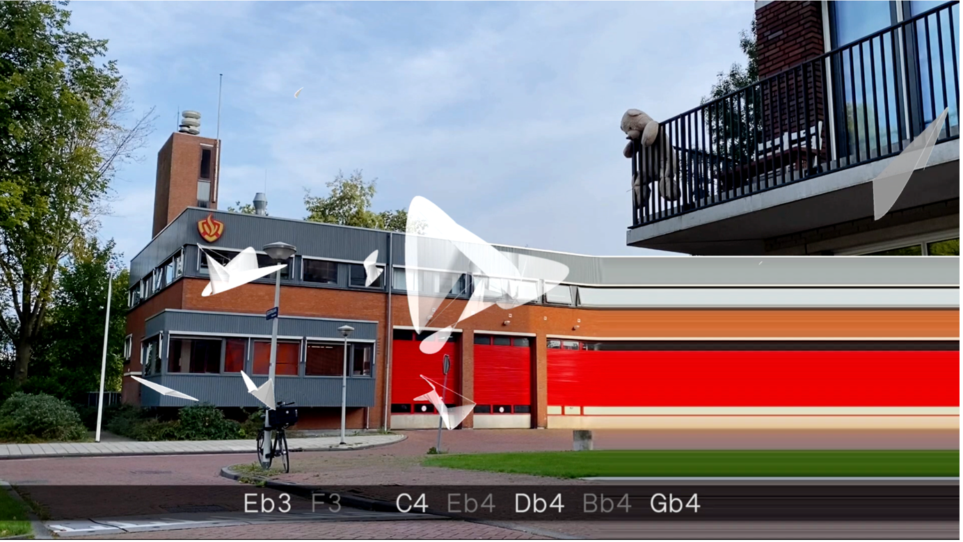 Another example of a relatively simple use of interactive score which leads to a complexity is in my own piece Orbital (2020). This is an audio-visual score for ensemble of any size. It is a journey around the Amsterdam ring road - the A10 - made during the first period of lockdown during the Covid-19 pandemic April to September 2020. The score is comprised of 74 scenes, audio-visual recordings from places around the A10, in which various musical parameters can be interpreted.