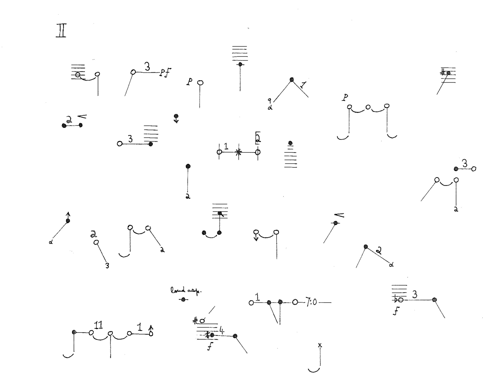 The interaction that occurs on the performance level between musicians and score, is the one that is afforded by the use of digital technology, where an HID interface or a ‘computer listening’ algorithm can steer the outcome of a score. A rare example of a pre-digital work that suggests an algorithmic interactivity between musicians is Christian Wolff’s Music for 1, 2, or 3 People, where the score defines the interaction between players rather than having fixed relationships. I define this as algorithmic due to the specific type of language used to describe the decisions a performer must make while listening to the other players.