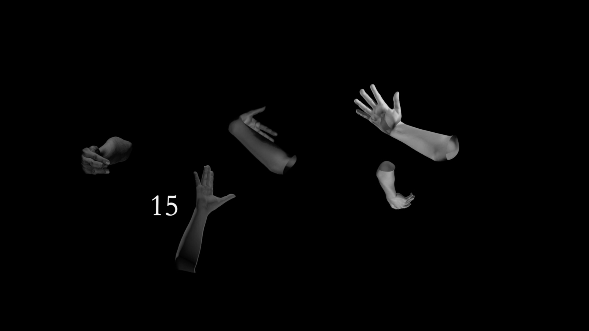 I have explored the potential of gestural controllers in several works, including the multidisciplinary pieces Unmute and Hands. In Hands (2021), a video score featuring a 3D animation of hand gestures guides the performance. Both works incorporate Myo controllers[9],which transmit muscle and movement data to a computer running various synthesis programs to shape the sound. A sound buffer is recorded live by the musicians each time they receive a signal—either as a vibration through the wearable device or via a light next to their microphone. The musicians then interact with the recorded sound buffer, locating it within a 360-degree spatial mapping around them. Using granular synthesis algorithms, they manipulate and transform the sound in real time, using the movement and rhythm shown on the video score as a guide.