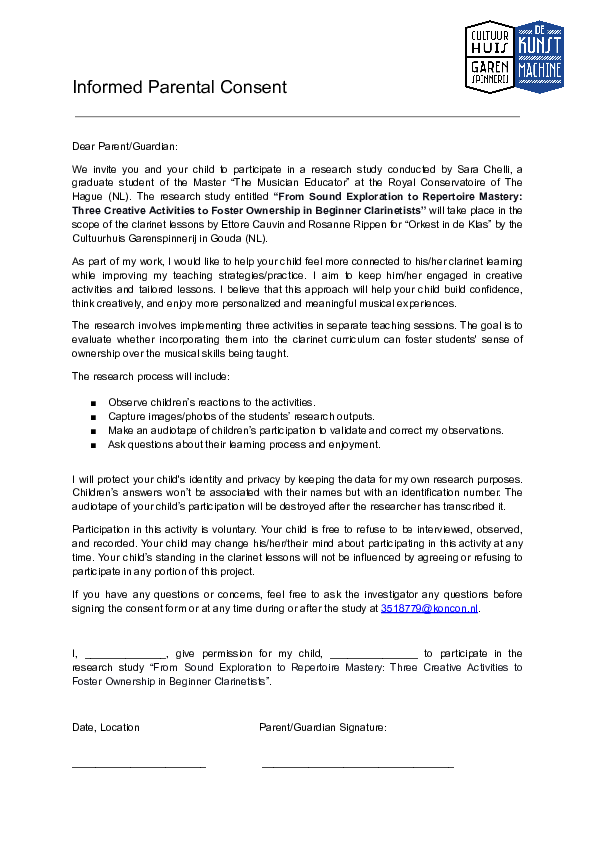 Cultivating a sense of ownership in beginner music students is important for fostering engagement and self-confidence in their educational journey. This study explores how integrating creative activities into a beginner clarinet curriculum promotes ownership among students aged 9–11. Focusing on three specific activities tested in multiple case studies, the research investigates students' relation with their musical development. Findings reveal that using creative activities as part of a personalized, student-centered teaching approach enhances students' motivation and engagement, ultimately fostering a stronger sense of ownership in their learning experiences. The study also offers practical insights for music educators seeking to creatively teach instrumental skills while creating a meaningful musical experience for young clarinetists.