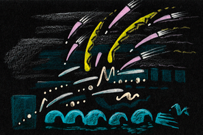 Orfeo understands that the sleep of Charonte is of a magical kind, and he will quickly wake up if the music stops. So Orfeo climbs into the boat, takes the rod and sings, and sings, and sings.