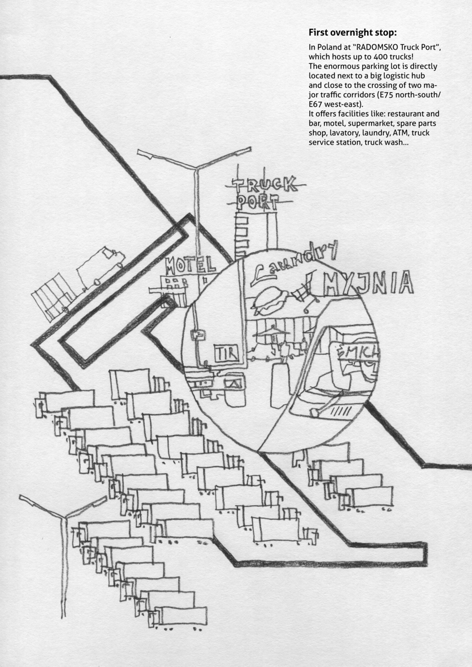 The van also helped us assimilate into the field of research: it looked like so many other vans driving the very same routes. And when waiting at one of the nodes, nothing starts a small chat more easily than talking about one’s experience with the vehicle itself, the items loaded, the workload of the driver, the route, the rhythm, the trouble with police and border controls, or the transport business in general. Transporter vans like ours are an attractive choice for professionals to escape the strict regulations and control mechanisms imposed on drivers of full-size trucks. They offer the opportunity to drive seven days a week around the clock and bypass the long queues of TIR border controls to transport goods and people – with or without proper papers. Transporter vans of this type are the favourite vehicles for fitters and market vendors. Thus, we eventually decided to follow their routes from wholesale markets to open-air markets and vice versa.