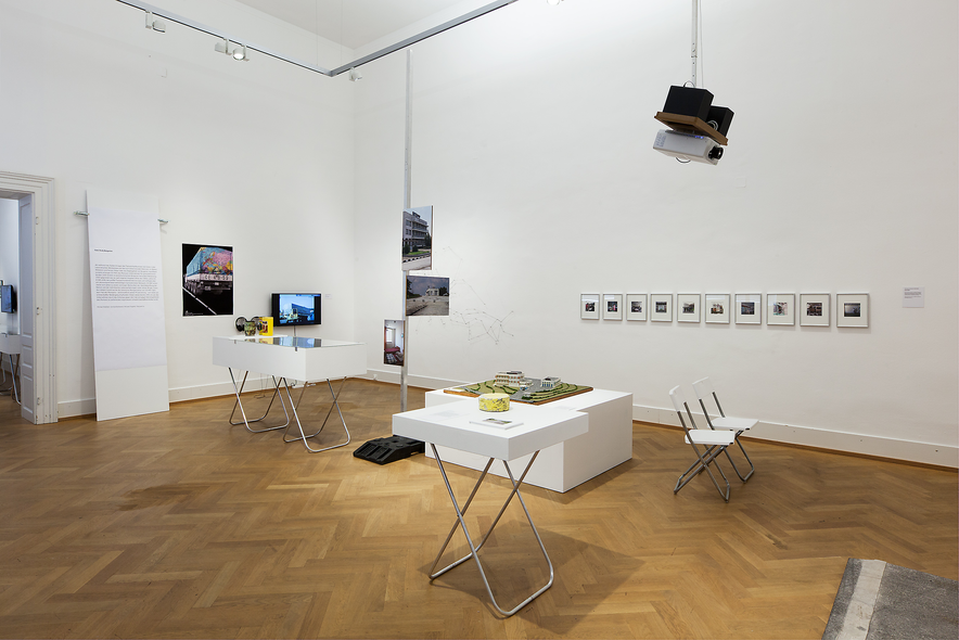 The order in which the three central case studies in the research project are shown in the three large exhibition spaces corresponds with a mapping that follows the real geographical situation – from south to north. Visitors enter the exhibition through works concerned with the ‘Bulgarian region’, then go through a ‘corridor’ to come to the ‘Vienna area’ with its historical reference projects, and finally arrive in the ‘Baltic region’, which is a cul-de-sac. Here they turn around and wander in the opposite direction through the exhibition – through the ‘Vienna area’ back to ‘Bulgaria’ and the exit.