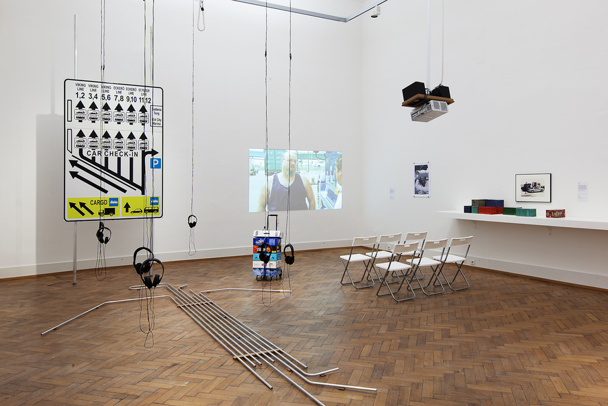 Starting with the SOMAT network of lorry drivers formerly employed by what was the state monopoly for transnational goods transport in Communist Bulgaria, we follow via video Corridor #8 by Boris Despodov, an ambitious but never realised road construction project running from the Black Sea coast to Albania. A presentation of the history of the international bus station in Vienna (from which the most frequented route leads to Serbia), is complemented by Logbook Serbistan, a video by Želimir Žilnik showing the fate of refugees who, before the huge wave of people in autumn 2015, came from North Africa, Syria, Iraq, and Afghanistan and got stuck in Serbia. The conclusion is formed by the rhythms of the Tallinn ferry terminal and its connections to Helsinki, which dominate the whole seaport, and the video Forgotten Space by Allan Sekula and Noël Burch, which opens up a window on the container ship traffic spanning the oceans of the world.