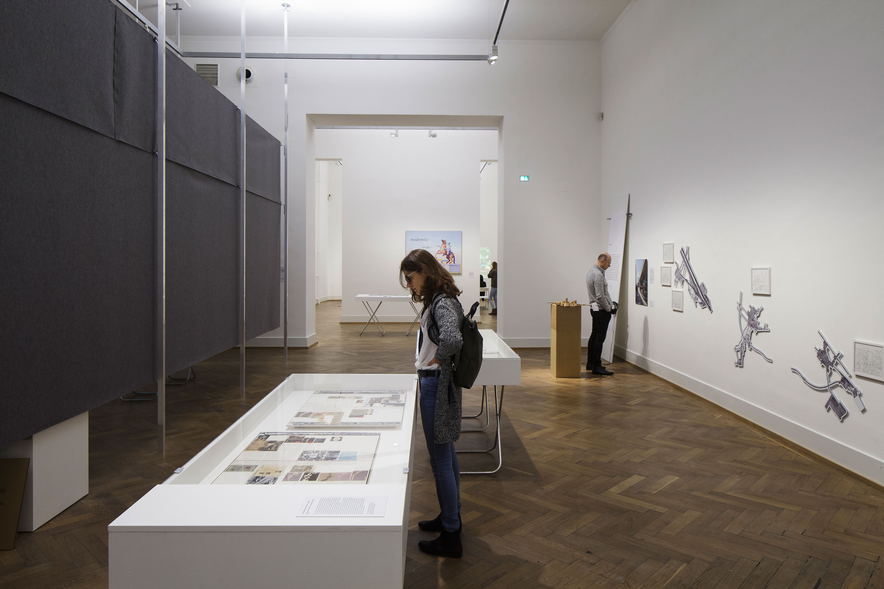 We conceived this exhibition as an interim report about this research project in the form of an art exhibition. This decision had the added advantage of freeing us from the discipline, linear argumentation structure, and textual reading methodology implicit in a scientific paper. Furthermore, the works that inspired our theoretical and methodological approach are not only discretely quoted in footnotes and sources but also prominently displayed in key positions in the exhibition space. This allowed for connecting lines of sight and interactive relationships while presenting suggestions for possible pathways through the different chapters, thereby varying the narrative structures.