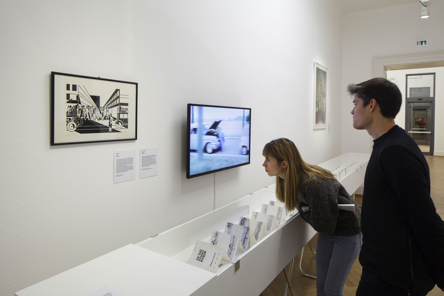 A further curatorial aspect of the project was the attempt to sound out shifts in meaning in different contexts. In contrast to the auratic white cube of the exhibition space at the Academy of Fine Arts Vienna, the works of the participants were also staged in the Stop and Go research laboratory situated in an active road-to-rail cargo terminal – a location with practical connections to the subject along with an ‘authentic’ atmosphere and a great amount of mobility expertise. An extensive print and video library was also made available to visitors there.