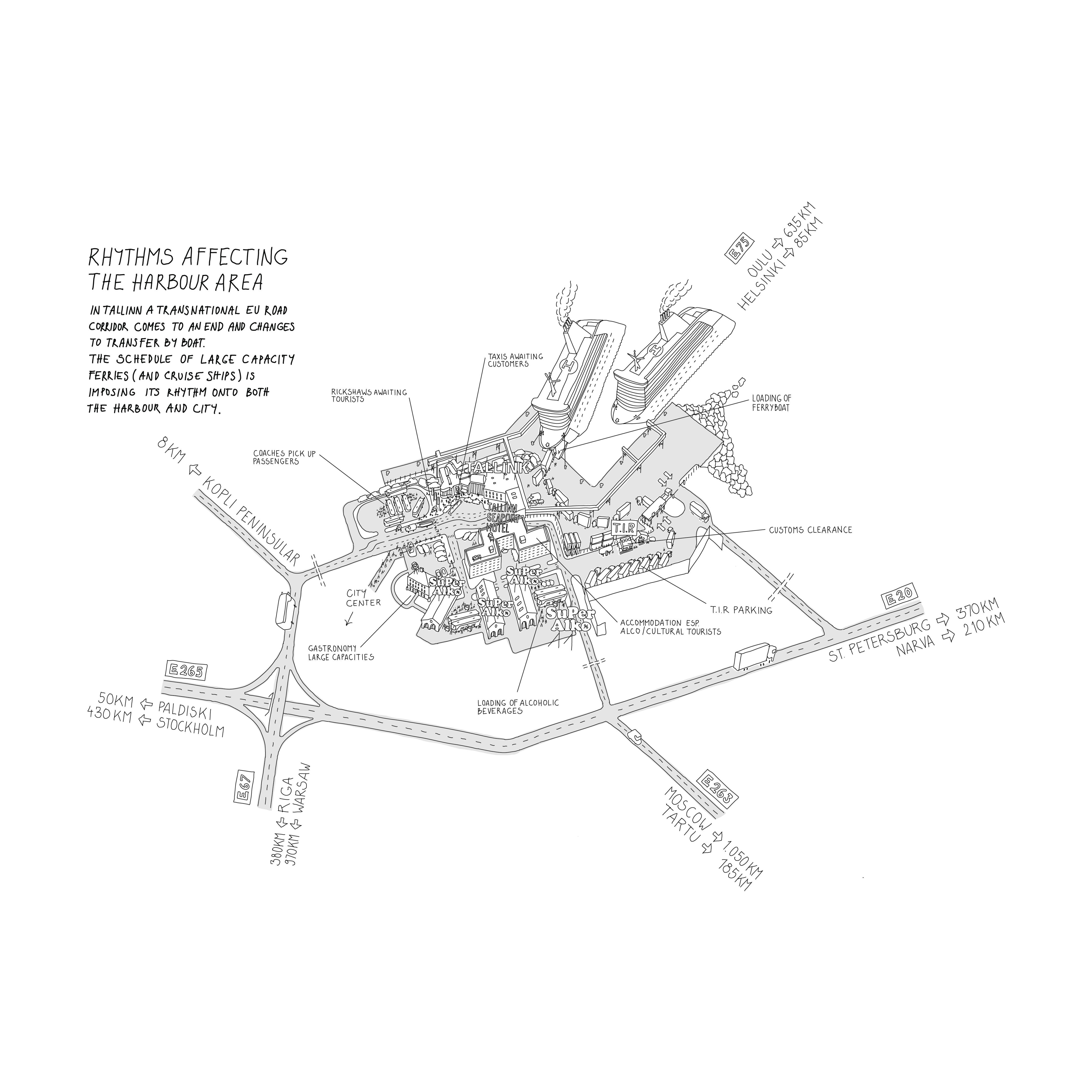 Stop and Go is a research project investigating physical and social transformation at nodes and hubs of transnational mobility and migration alongside major pan-European road corridors in a geographic triangle between Vienna, Tallinn, and the Bulgarian-Turkish border. It draws on intensive embedded field trips with a mobile lab (a Ford Transit van) using (deep) mapping, workshops, installations, and exhibitions both on tour and in a stationary work space in a Vienna logistics hub (a former railway station). Intermediate and final results have been represented in diagrammatic drawings, maps, and (animated) graphic novels.