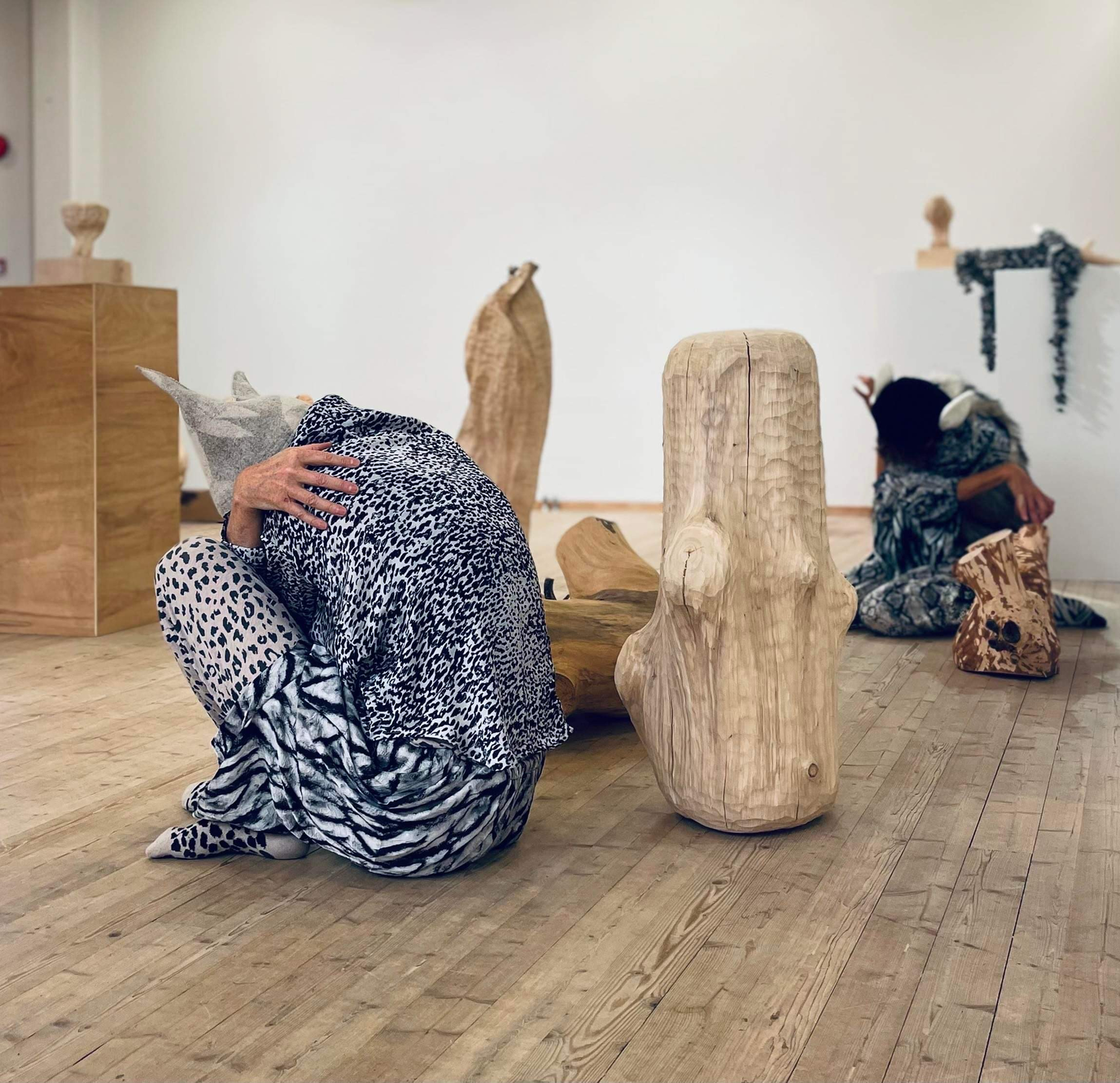 Animalium becoming logs at Nils Aas Kunstverksted visiting Siv Bugge Vatnes exhibition Ulmesang during the KoreDa-festivalen 6.-7.10.2022.