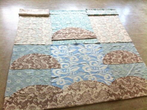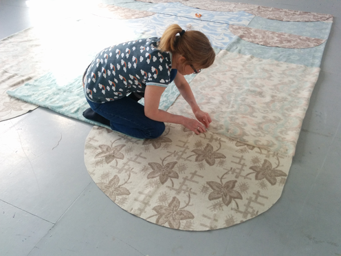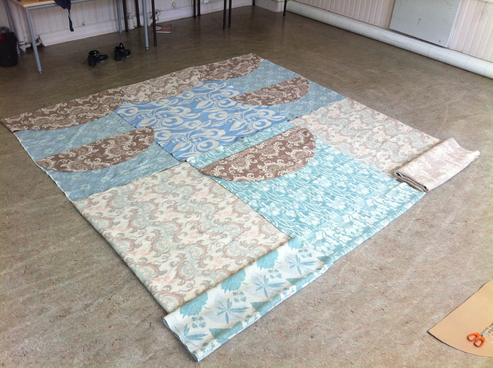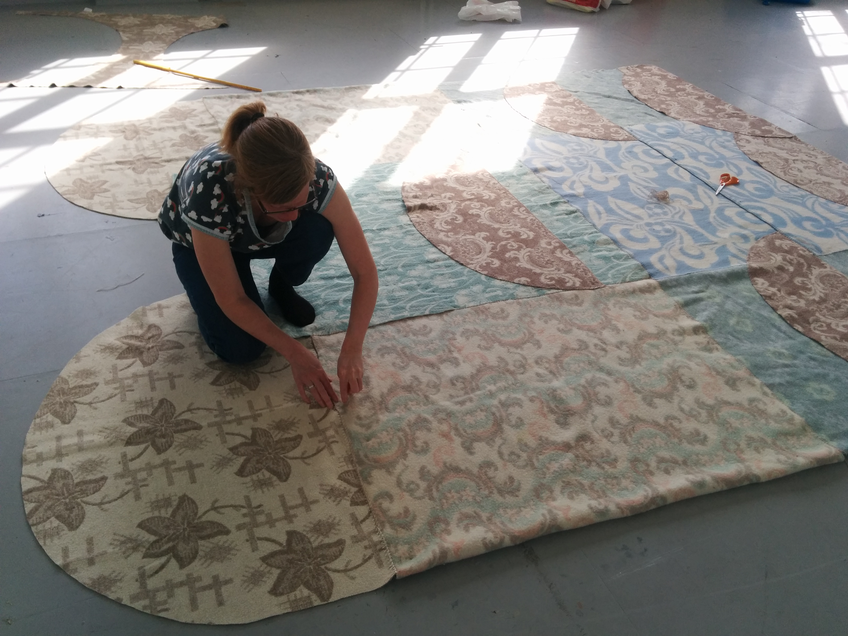 Jeg var jo litt spent på hva Anne Helga ville komme med. Og ble overrasket over formen - som ikke var sentrert rundt midten, men beveget seg liksom sidelengs fra den ene kanten til den andre. Allikevel hadde komposisjonen av ulltepper en harmonisk bevegelse i seg, nesten som bølger som ruller mot stranden og trekker seg tilbake...