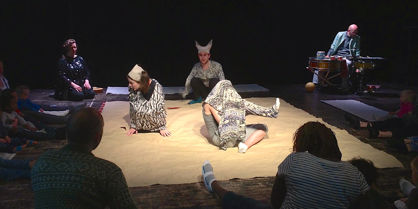 After the performance we had a research converseation with professor Anne Beate Reinertsen and associate professor Merete Moe, both pedagogues from Queen Mauds. We discussed how the performance communicated with the children despite the fact that the work have an experimental attitude without words and more familiar theatrical elements. Photo: Andrea Haugerud Hovik