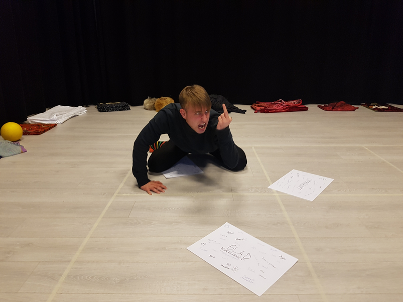 Working with the exercises, we found new approaches to the affective languages of our project, and discovered how the emotions have a wide spectrum of shades and different expressions. Keeping on with the work over time the actors moved beyond the surface of the theatre masks, and begun to explore the subtle shades in between.