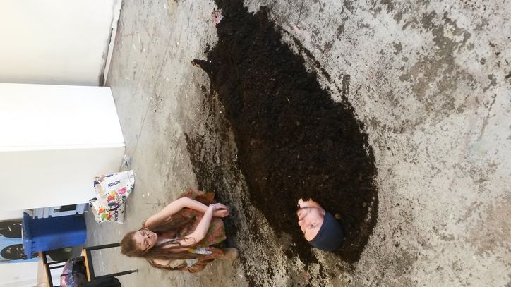 - We have been coming together to talk 1-on-1 quite a few times. I would speak my mind, he would question me and think along with me. These conversations have always been very good for me to articulate and clarify thoughts about the work. Also, he has been with us in one or two rehearsals to observe and one time also to co-create, in a session where the goal was to provoke new material. Towards the end of the process he has been attending run-throughs on which he gave us his thoughts. These moments were very valuable because they raised a couple of crucial questions, such as: what is the dynamic of the piece? Is it supposed to be one piece or 4 separate pieces? And what is the relation between the performer and the soil in this (or these) piece(s)?