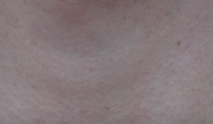 We make video-images of body parts moving because of speech or because of (intense) breathing. Especially in those images of breathing, the movement of the skin is more perceivable. It is beautiful when bones become visible and invisible; they appear and they are covered with flesh (for example in the Ribbs, belly side, and throat side above). Also these images are beautiful because of the high video quality. Also the body-image becomes a sort of landscape… how can we make use of those images over a longer period of time? How can we stretch that HD quality in slow-motion without losing the HD quality. Also – how is the HD quality going to be with a projection? Or do we need a television?And could we project the body in a fragmented way or as cracks?