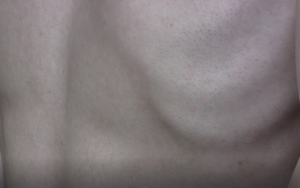 We make video-images of body parts moving because of speech or because of (intense) breathing. Especially in those images of breathing, the movement of the skin is more perceivable. It is beautiful when bones become visible and invisible; they appear and they are covered with flesh (for example in the Ribbs, belly side, and throat side above). Also these images are beautiful because of the high video quality. Also the body-image becomes a sort of landscape… how can we make use of those images over a longer period of time? How can we stretch that HD quality in slow-motion without losing the HD quality. Also – how is the HD quality going to be with a projection? Or do we need a television?And could we project the body in a fragmented way or as cracks?