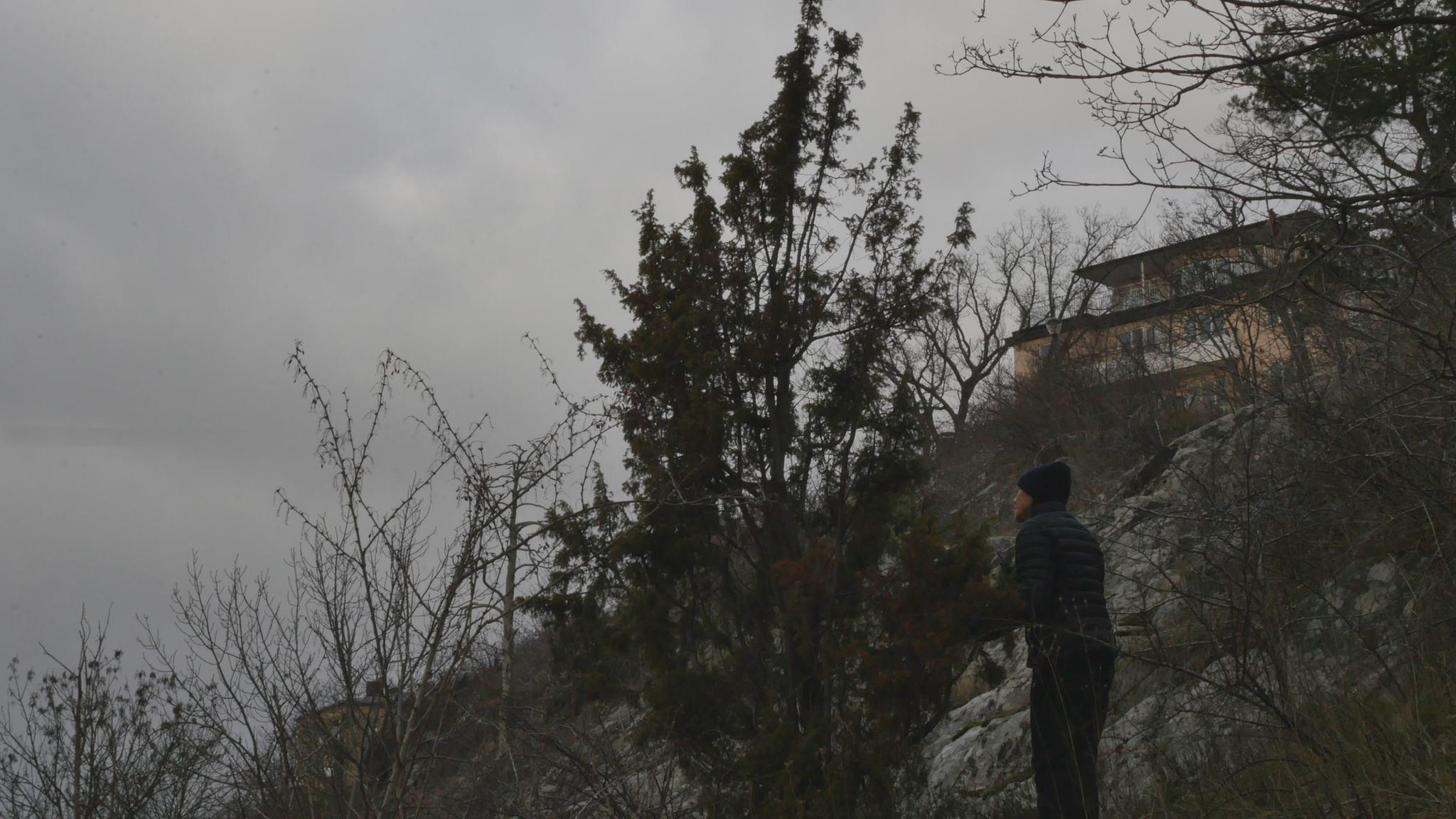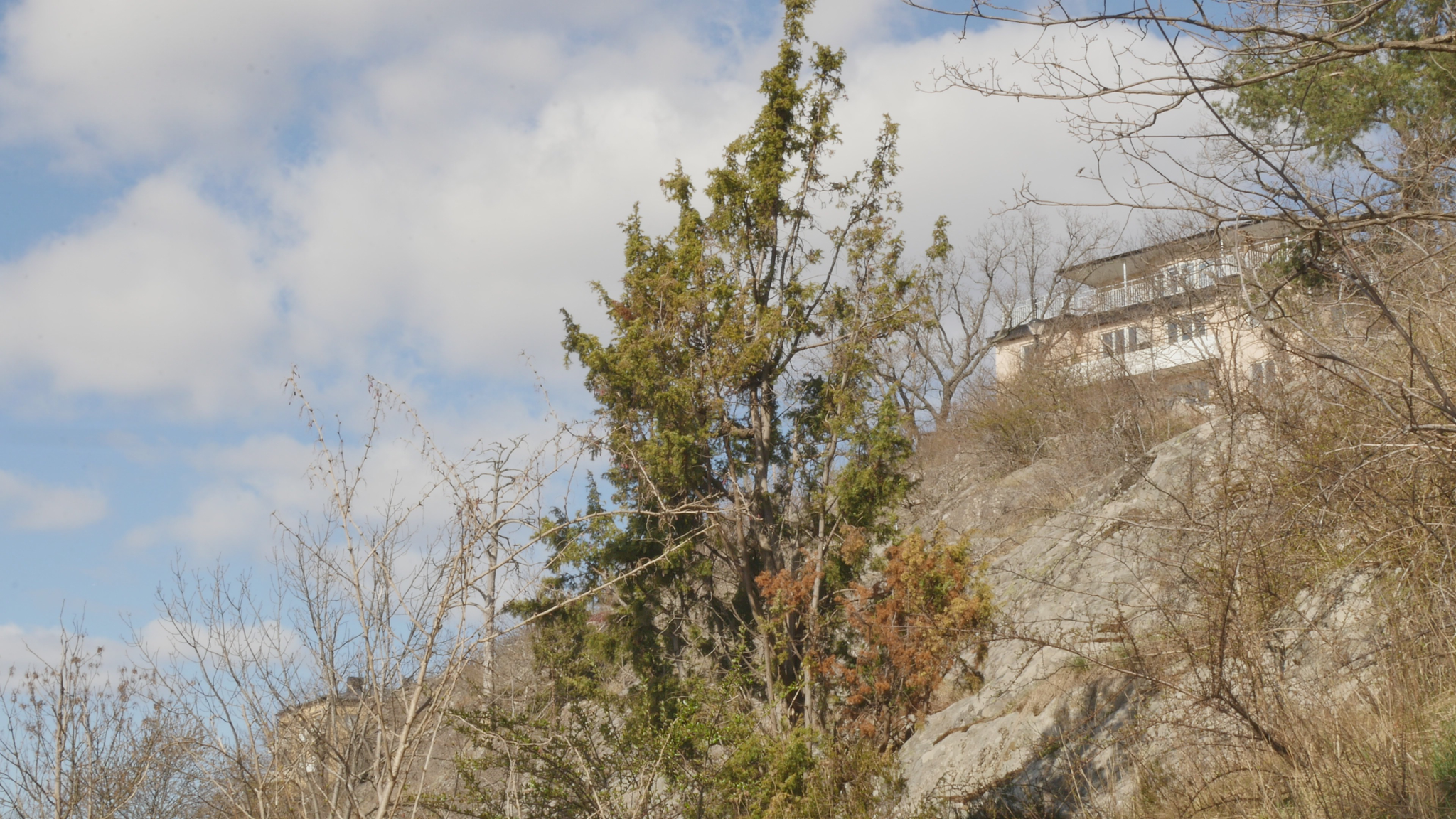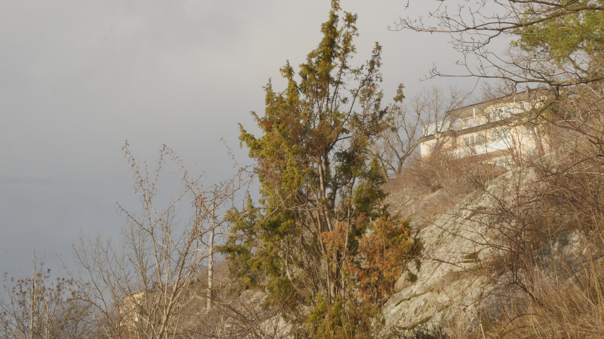 Hej på dig kära en, kära enris. Nu har all snön försvunnit så det är svårare att hitta en bra plats här bredvid dig. Med snön så har allt förskönande täcke försvunnit också och jag kan se att du omges av toalettpapper, och en massa och massa, massa cigarettfimpar. Jag kan inte förstå, det är som någon skulle ha tömt en askkopp här, eller så har de bara samlats genom åren. Nu ser jag också att på din torra gren, för det är egentligen bara en av dina grenar här som håller på och torkar, har du både gröna och blåa bär, också på de andra grenarna. Jag minns inte tidigare att jag skulle ha sett bären, det vill säga att du är ett slags fruntimmer, om man får säga så, en hon en. Ja, det är ju inte så många växter så skiljer på han- och honkönade individer, men ni enar tycks vara sådana. Det som också är väldigt påtagligt nu när klipporna är kala är att det går en stig här bredvid dig. Jag vet inte om den fortsätter längre ner men i varje fall upp hit på den här avsatsen så är det en vältrampad stig. Det brukar finnas staket här på de ställen där det är brant så att jag vet inte om det är en riktig stig. Och nu när det är bara ni barrträd som är gröna så ser man ju så tydligt allting. Få se hur det blir sen när det blir löv. Du har också här rosenbuskar och allt möjligt som jag inte vet vad det är här alldeles intill på båda sidor om dig. - Det som också är väldigt påtagligt nu är att Essingeleden hörs så starkt. Jag tänkte inte att det skulle höras så här mycket för vi är ju en bit därifrån men visst hörs bruset tydligt. Men vinden kommer inte hit så illa, du skyddar mig för vinden en aning för den kommer från sydväst. Det som jag tänkte då eller planerade att jag skulle prata med dig om är dels det som finns här, det som du kan uppleva, och sen också kanske det som inte finns här, som jag kan uppleva på något sätt som en frånvaro på gott och ont. Och just idag så är det väldigt påtagligt med frånvaron av snö. För vi är nu, vi har den 5 februari så nu just borde det vara en massa snö eller i normalfall så är det här den tiden på året då det är mest snö. Och ofta när ljuset håller på att återvända så gnistrar och glimmar och glittrar snön verkligen i solljuset. Det var en del snö som kom ner i går eller i förrgår men den har försvunnit igen för det är plusgrader så det är klart att den inte finns kvar. Konstiga dagar. Det ska bli spännande att se hur pass torrt det blir när det inte finns något snötäcke sedan som skall smälta. Men nu är det förstås gyttjigt och lerigt och fuktigt. En annan sak som väldigt tydligt inte är här för mig men som du ju inte kan besväras av är de nyheter som just har spridit sig över Stockholm och också hela Sverige att det har varit en gräslig skolskjutning i Örebro. Och det har ju brukat vara så att det, skolskjutningarna som jag vet om de har funnits i Finland för några år sedan. Och Sverige har då haft sitt gängvåld och alla sprängningarna nu för tiden och så vidare. Men det här var då en jättelik skolskjutning på en vuxenskola. Och han som sköt var 35 år och synbarligen sköt sig själv också. Det är alltid kusligt med de här våldsdåden som är liksom ensamma olyckliga gärningsmän, för man tycker att skulle det inte ha funnits någon chans att liksom hitta den där olyckliga människan innan det bar så illa. Man vill ju så ogärna blanda sig med andra människors problem och i samhället nuförtiden så är vi ju mindre och mindre på något sätt beroende av familjen. Fast jag just personligen är väldigt beroende av familjen eftersom jag inte har en egen familj, alltså inte en make och inga barn. Du växer här på sätt och vis ganska ensam på klippan. Det är inte någon släkting nära dig men jag kan se en, ska vi säga kanske en 50 m härifrån lite högre upp. Där finns en en som växer och det finns några till längre fram på Fredhällsklippan. Men inte är det ju något samfund ni har här om jag tänker på andra ställen där enar ofta växer liksom i stora klungor. Men i och för sig så finns det kanske inte näring för så många här på den här lilla avsatsen. Och det där som jag sa om stigen så det tycks faktiskt vara en stig, för nu går det en person där nere på stigen. Det ska bli spännande att se om hon hittar fram eller om hon helt enkelt vänder. Ja, det tycks hon göra. Men det där alltså som en metod att fundera över vad som finns här och vad som inte finns här är ju ganska bra, för att det finns så mycket som inte finns här, och som man kan glädja sig åt att inte finns här. Inte bara skolskjutningen utan krig som pågår i Ukraina och Gaza remsan och på Västbanken och i Mellanöstern över huvud taget och på många andra ställen också. Och nu smattrar någon slags maskin som nästan låter som ett vapen, men det lugnar mig att veta att det är verkligen, det är byggarbete. Och nu ser jag kvinnan som gick längs med stigen, hon fortsätter faktiskt framåt men nu kryper hon på alla fyra lite längre fram för att komma fram till stigen på andra sidan klippan. Tuff nog, jag skulle kanske inte försöka mig på det. Men just nu är det lyckligtvis inte så halt för att det är inte är fruset. Andra saker som inte finns här just nu är förstås småkryp och mygg och sådant som kunde störa dig. Fast jag tror nog att det som har stört dig mest här är faktiskt de människorna som har kommit och slängt allt det här giftet vid dina rötter. Man får ju hoppas att det är inte är så mycket nikotin kvar utan att det faktiskt är bara de där filtren som sedan inte kommer att förmultna på hundratals år. Men nikotin är ett ganska gräsligt gift också för växter. Jag undrar vad det beror på att din ena gren här har börjat gulna, om den har skadats på något sätt eller om det är något annat som