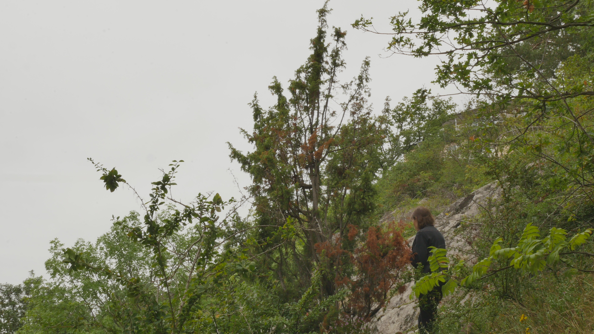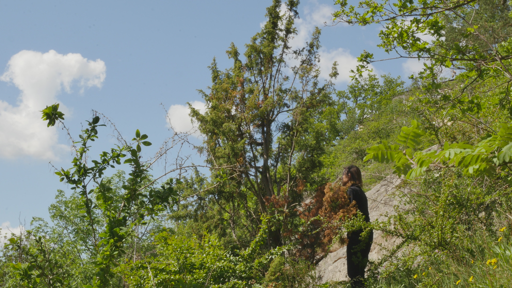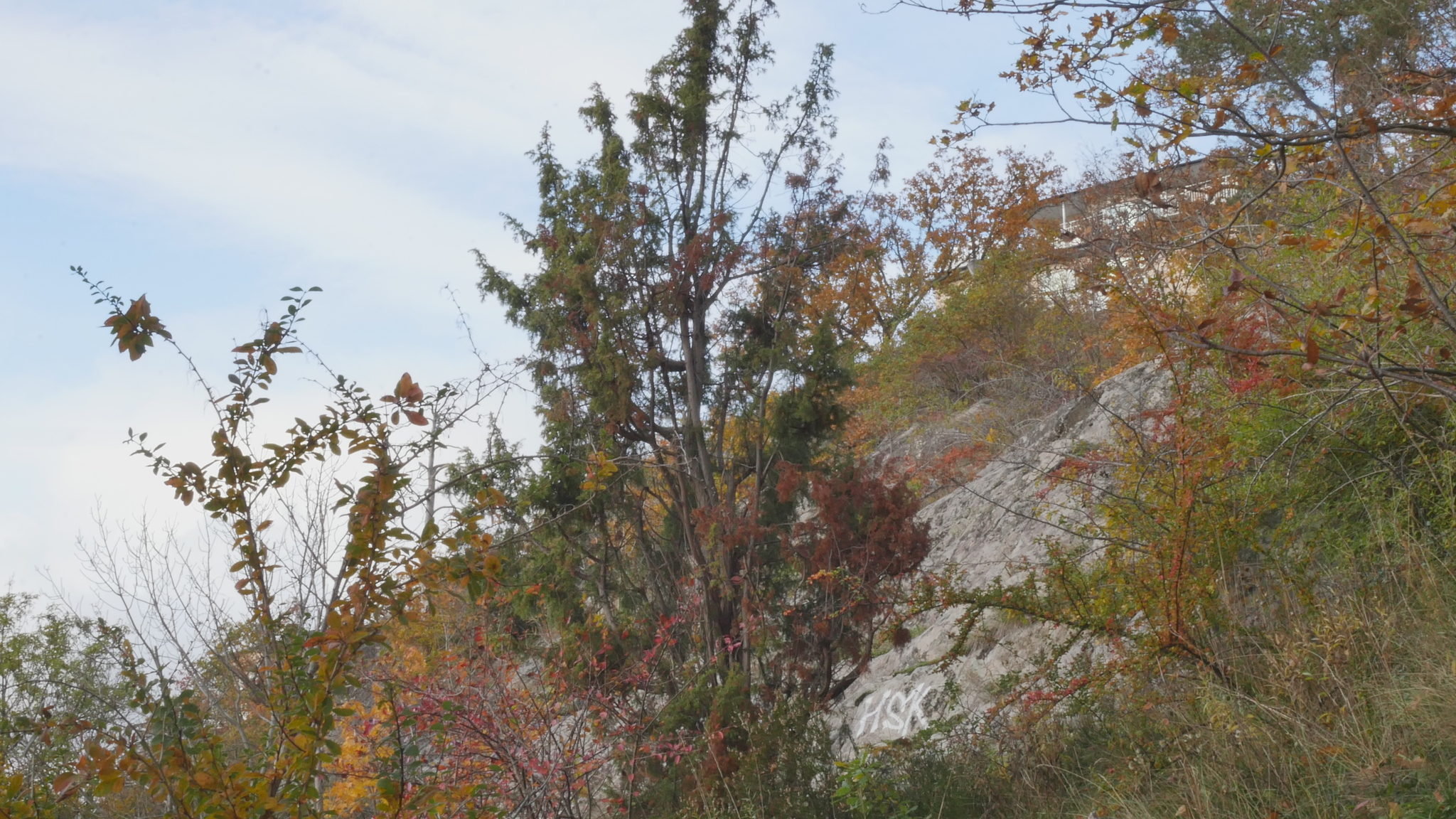 Hello, dear juniper, and happy Tuesday afternoon, 28 October. The ground is damp, so I slipped just now when I was trying to get to you. Now I'm a little confused because the dead branch, the completely brown dead branch here, is full of blue berries, ripe juniper berries, while the healthy branch here to my right has hardly any, a couple of blue ones but also a few green ones that will ripen next year. Could it be that the birds don't want the ripe berries from the brown twigs? Strange. Or maybe they can't find them. Or is it simply that the branch wanted to produce as many berries as possible before it dies completely? But it's a thick branch, so it will remain there for a long time; only the needles will fall off eventually. Well, that's not what I wanted to talk to you about. But I must say that the weather is lovely; now even the sun has come out after all the rainy days. And there's very little wind, which is nice, but it also means that the noise from the Essingeleden motorway is extremely loud. It's partly hidden by the wind, but now it's (precisely) the main sound in this area. Many of the trees are completely bare, but the alders are still green. This hawthorn behind me has yellow leaves and a few green ones, but has lost most of them, while the small bush on the left, which is apparently the same species as the one on the other side, towards the shore, which has beautiful red leaves, is protected by you here and still partly green. But it has red berries, and I really don't know what kind of bush it is. There are no new cigarette butts or piles of cigarette butts under you, but on the other hand, on the contrary, - what am I babbling today - on the other hand there are two new beer crates - beer crates, beer cans! How careless I am with my words today. But then someone has written HSK in white letters here on the rock and on the stone near the camera as well. And I don't know what HSK means here. In Helsinki, it could be the Helsinki Sailing Club, but what it means here, I have no idea. A couple of days ago, I was talking to another juniper a little further along here on Fredhällsklippan. And then I just recorded a little conversation with my phone so that I didn't get in the picture myself like I am now. And that was because I didn't come to you because I wanted to speak English, because it was a contribution to a meeting with a working group. But what might interest you, too, or our collaboration here, is that I called it a “conceptual gesture”, that is, ‘begreppsmässig gest’ in Swedish, or perhaps one should say ‘konceptuell gest’, because we talk about conceptual art, I think. Anyway, I was just thinking about how much the naming changes the meaning of what you're doing. So, I've been calling our conversations “At the juniper’s place on Fredhällsklippan”, because that's what I do here, I come and visit you at your place. But what if I were to call it a conceptual gesture? Would it be taken more seriously? Perhaps not. But I also saw, last week I saw a film installation at SKH, Stockholm University of the Arts, which was made by a doctoral student there, documentary filmmaker or filmmaker Savas Boyraz, if I'm pronouncing the name correctly. And it was his 80% seminar, and he showed an installation and then a shorter film. In both, he had used elements of fantasy, so to speak, or fiction in a way. The installation was a kind of dance film, you could say, where folk dancers were placed on a mountain or between cliffs. And the folk dance itself imitates the behaviour of certain birds. And then this was somehow emphasised in these scenes from the mountains. But then there was also a sequence showing these same folk dancers on stage. And later in the discussion, I learned that it was a Kurdish folk dance and that this particular dance has also become associated with warriors and the resistance movement and so on. But I'm not familiar with the Kurdish situation, and I think there are far fewer Kurds in Finland than here in Sweden. But what I started to think about was the possibility of using imagination. Because I made an attempt, I mean, you can't know this, but I made an attempt to use my imagination, so to speak, with two pine trees a few years ago, one here in Stockholm and one in Helsinki. And I tried to play messenger between them and send messages from one to the other. And in the end, I was quite dissatisfied with it because it felt precisely like using my imagination. It wasn't, it wasn't in any way, it wasn't ethically right, and it wasn't, well, it was kind of pretending. Because of my background, first in theatre and then in performance art, I have kind of distanced myself excessively from the fictional and focused very strongly on the idea in performance art that what happens, happens for real, what is done, is done for real – whatever that ‘for real’ may mean. And that also means that I am talking to you for real. And I don't pretend, for example, that you are answering me in Swedish, which you are not. Then one could say that I should develop my sensitivity so that I could perceive what you are answering me with my sixth sense, so to speak. But I haven't managed to do that, and I am, I have a certain distrust of it, I believe in the concrete. But the concrete does not exclude the conceptual. And what I mean by conceptual gesture is really that I am trying to offer an example of how one can relate to a juniper bush or to other living beings that are different from us. And that is an attempt or a gesture in two senses. It is partly a physical gesture, as when I’m reaching out my hand, like an invitation. But at the same time, it is also not a statement or a very strong assertion, but more of a gesture, a suggestion. Well, that gesture is partly directed at you, who are standing here now, growing and thriving, but partly, and to a large extent, it is directed at any listeners or viewers who will later watch this video or listen to the pod