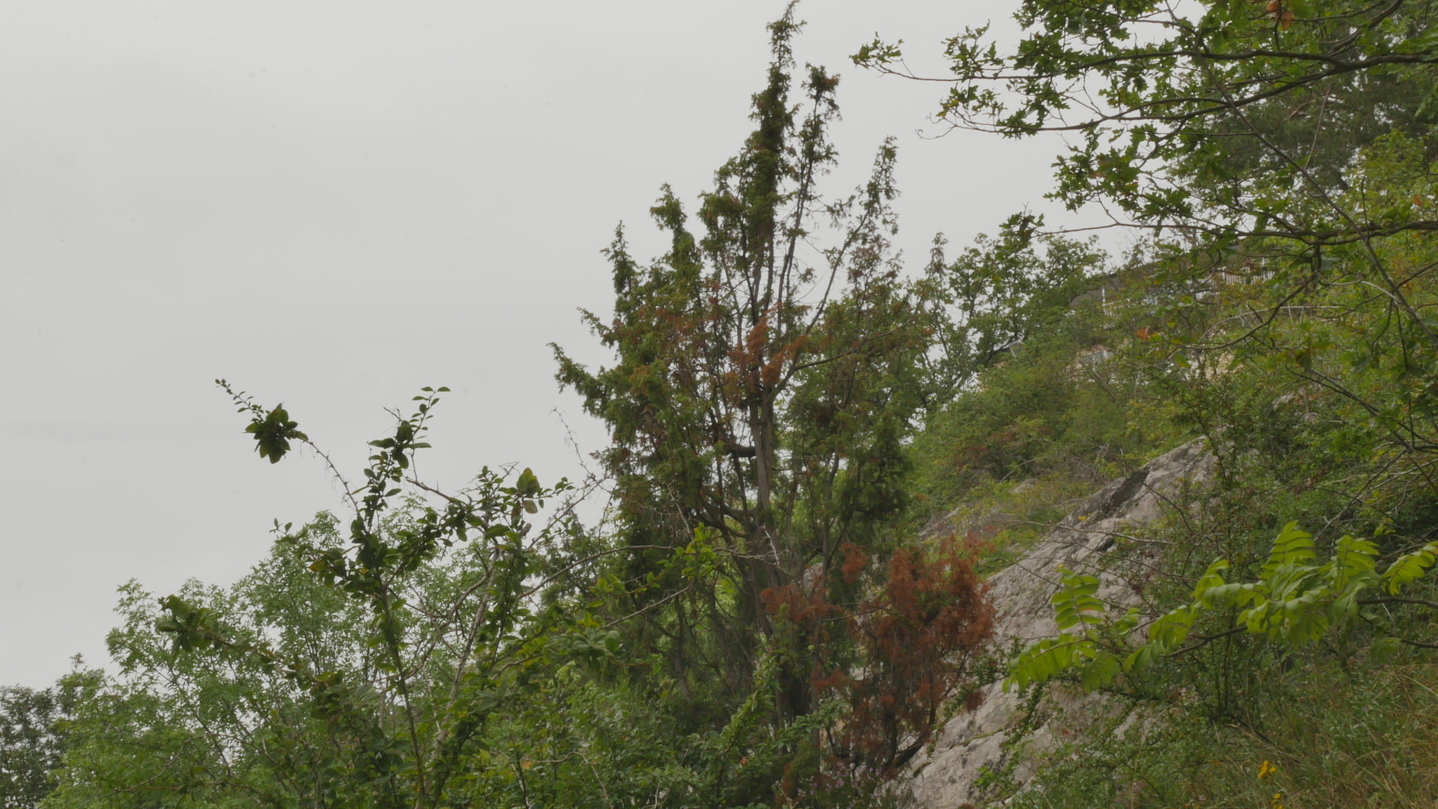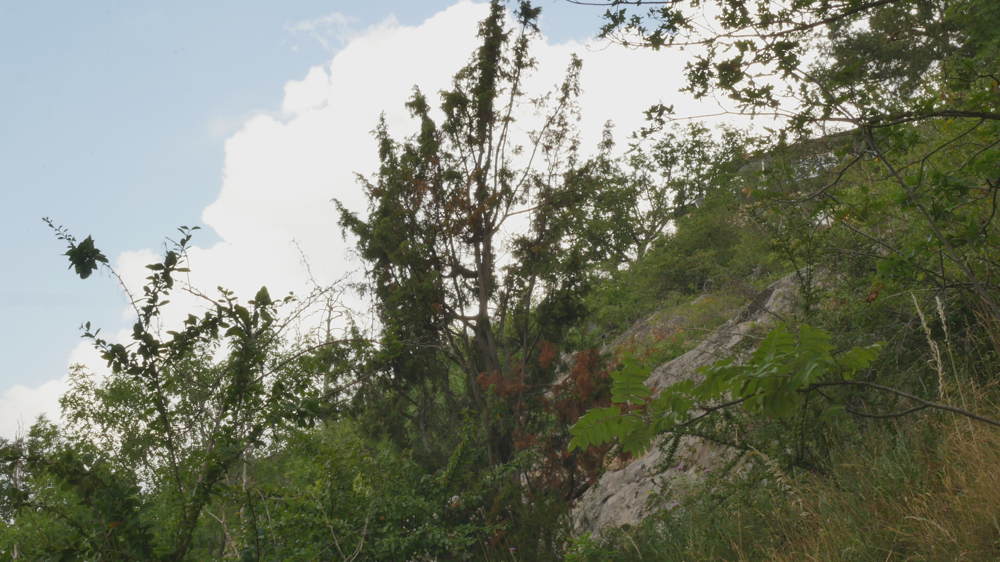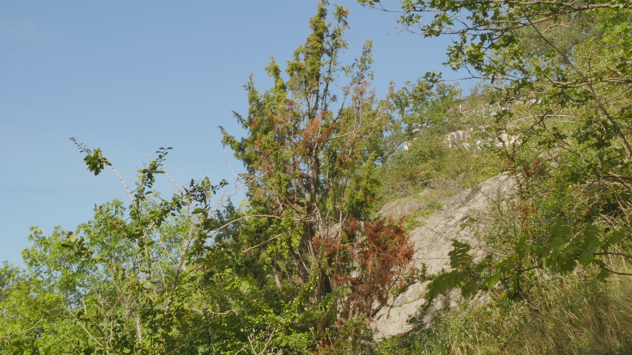 Hello, dear Juniper. It's good to see you, it's been a long time since we last met, unusually long because I was here at the beginning of June and now it's the end of July, that is, the 25th, so it's been closer to two months rather than a month since we last saw each other. It's hot, warm summer weather, really sweaty, even though there are clouds in the sky today, which helps a little. I look at your yellowed branch, which I've always been worried about, and now it's completely dead. It looks very brown and it's kind of, it's still there but probably not alive. I wonder if the small green pieces are from another branch that has just mixed in with the brown one. But what I see, and what looks very nice, is that you have a lot of small blue berries, both green ones that will ripen next year, but now many have already ripened this year and they are bright blue or ultramarine blue and beautiful. And the cigarette butts are still there. The blue beer cans have disappeared, but there are two beer cans on the other side below you, like some kind of offering to the spirit of the juniper. It's very dry, it's been hot and warm and very dry, and the few showers we've had have washed away, so you can see that it's really dusty on the path here on the cliffs. But otherwise, I don't know, it's so paradoxical because you seem a little, you look worn out, many of your branches have hardly any leaves, I mean, they're not called leaves, what are they called, needles, almost no needles, but on the other hand, this branch next to me and some others look very healthy. So perhaps this is an example of what is meant when they talk about plants having a modular structure, that the different parts of the plant have a fairly high degree of autonomy, so perhaps this is how it manifests itself. And here around you, everything is growing, I'm tangled up in a rosehip bush that wants to cling to me. I don't know what else to say, well, this hawthorn next to you is also partly dried out, many of the branches are dry, but it's probably alive, but only the small branches next to the trunk are green. It's probably quite old and it's small. And when I look at your trunk, where it starts in the ground, it's quite thick for a juniper, so I can imagine that you've lived here for many years. Now, I don't remember how old junipers can become, but I do remember that they can live to be 1,000 years old, but I mean on average. Yesterday I listened to a recorded lecture, on YouTube by if I remember correctly, Jared Farmer, who wrote a book called Elderflora a few years ago, about old trees and old plants. And it struck me that he was talking about how the concept of a tree is not really a botanical concept, but rather a venerable title, a way of expressing reverence by calling something a tree. And then I ask myself why we talk about a juniper bush and not a juniper tree, because as you stand here now and grow, you could really be honoured with the title of tree instead, especially since you have such a clear and strong trunk. Well, I could call you the juniper tree, but I don't know if that would make you any happier. What he was talking about, and what made me look at that conversation, he mentioned it only briefly, but someone else was referring to him, and that is the concept of chrono-diversity. So, we talk about biodiversity, like the diversity of species and how important it is for development and for nature and for human health and for the health of nature and ecosystems that there is biodiversity, that there are many different species and many different variants of different species and that there is a gene pool for all creatures to develop and so on. But he was talking about chrono-diversity and the importance of different creatures of different ages, and he was thinking mainly of ancient, very old trees as kind of bearers of history. He was a historian, not a botanist. And also people's relationship with old trees, which spans several generations. Those who saw the tree when they were young are no longer alive, and the tree may still be there even when those who are now children have passed away, so the idea that there are things that have continuity. And trees can be such things. And this idea of chrono-diversity does not mean that only old things should be honoured, but that it is important to have things of different ages. And it feels very good to think that way from an old person's perspective, since I must consider myself an old person now that I'm retired and will soon be turning 70, help. Well, anyway, the idea that there is value in continuity and that there are different ages. And of course, there is a lot of talk about Old Growth Forests, i.e. old forests, that they are ecosystems with old trees that cannot be replaced just like that, alive. But this also applies to other contexts, individual park trees and so on. And then they mentioned, and it was quite funny, they mentioned a European tradition of designating old trees as monuments. And it's true that there is, for example, a competition for the European Tree of the Year, where different countries can nominate their candidate, and it's often an old tree in a village that has great local significance. This tradition was then taken up in the United States, where they have started naming old trees and trying to monumentalise them in some way, precisely to get people to let them live on. He was critical of all kinds of nationalistic arguments for the preservation of trees, but at the same time he noted that all reasons are good reasons if the trees, the old trees, are allowed to live. And I have, how should I put it, Stockholm is full of beautiful old oak trees, and right next to us here there is a beautiful old oak tree, two in fact, and the camera is standing quite close to a large, beautiful old pine tree. Pine trees are among the trees, all conifers in fact, that can become the oldest. But I'm not trying to suggest that you should now be monumentalised or