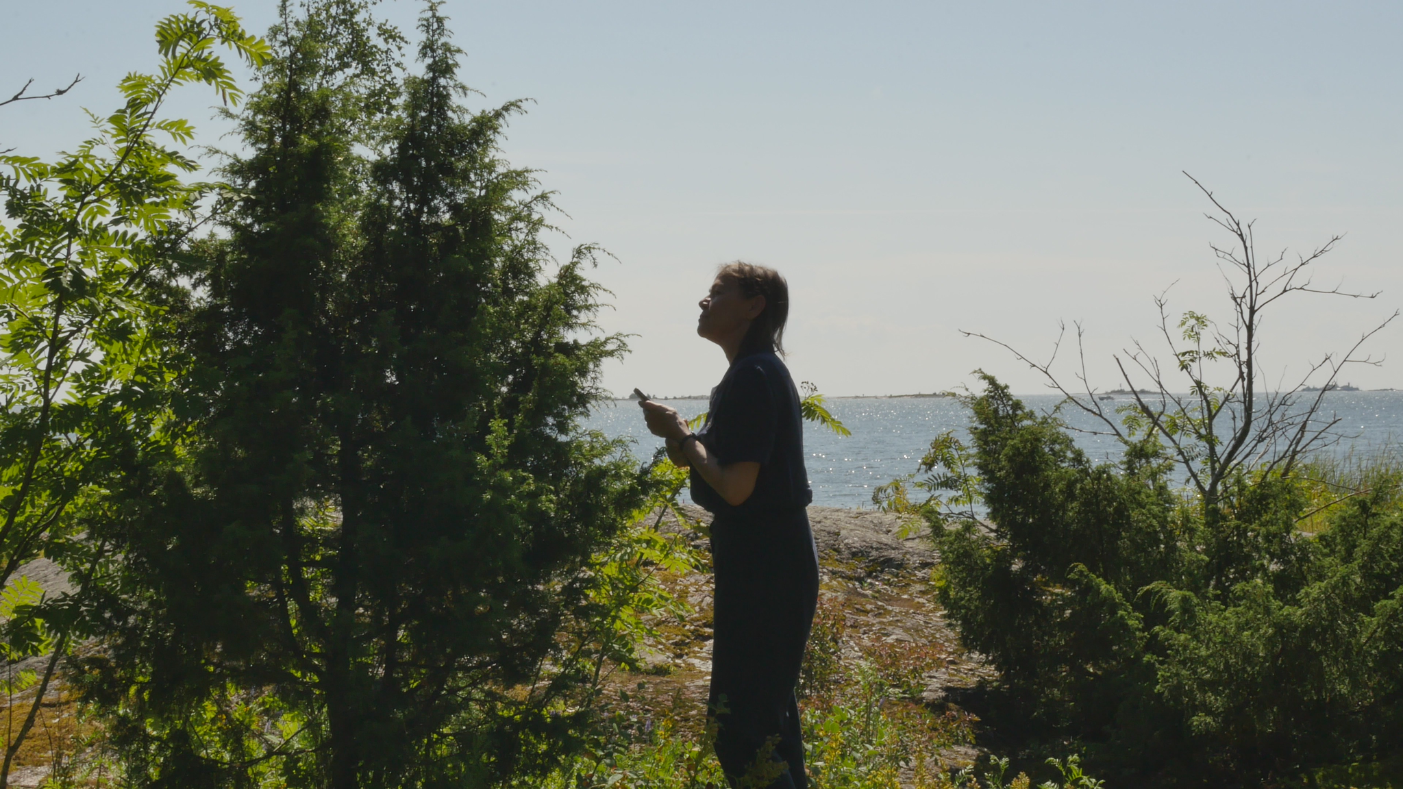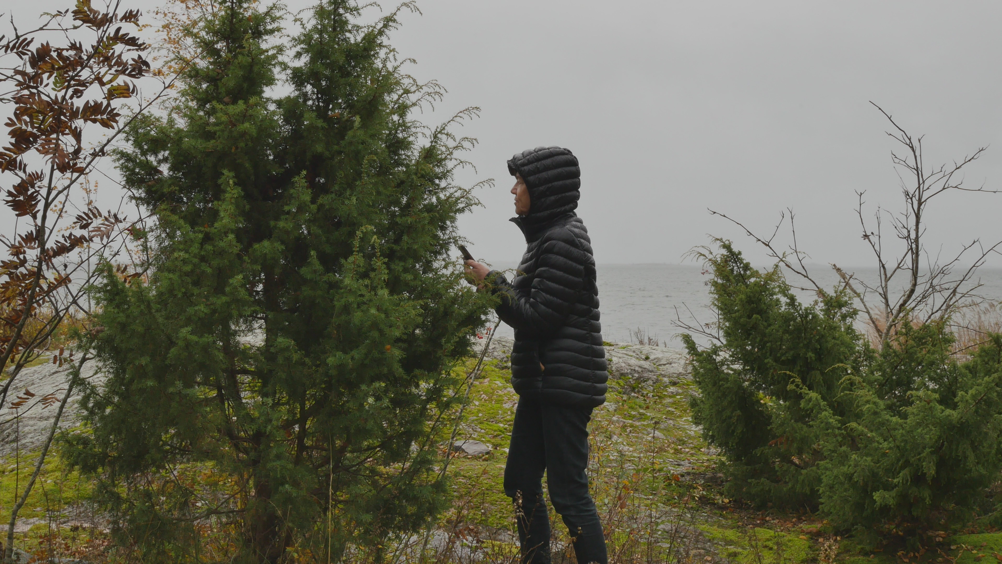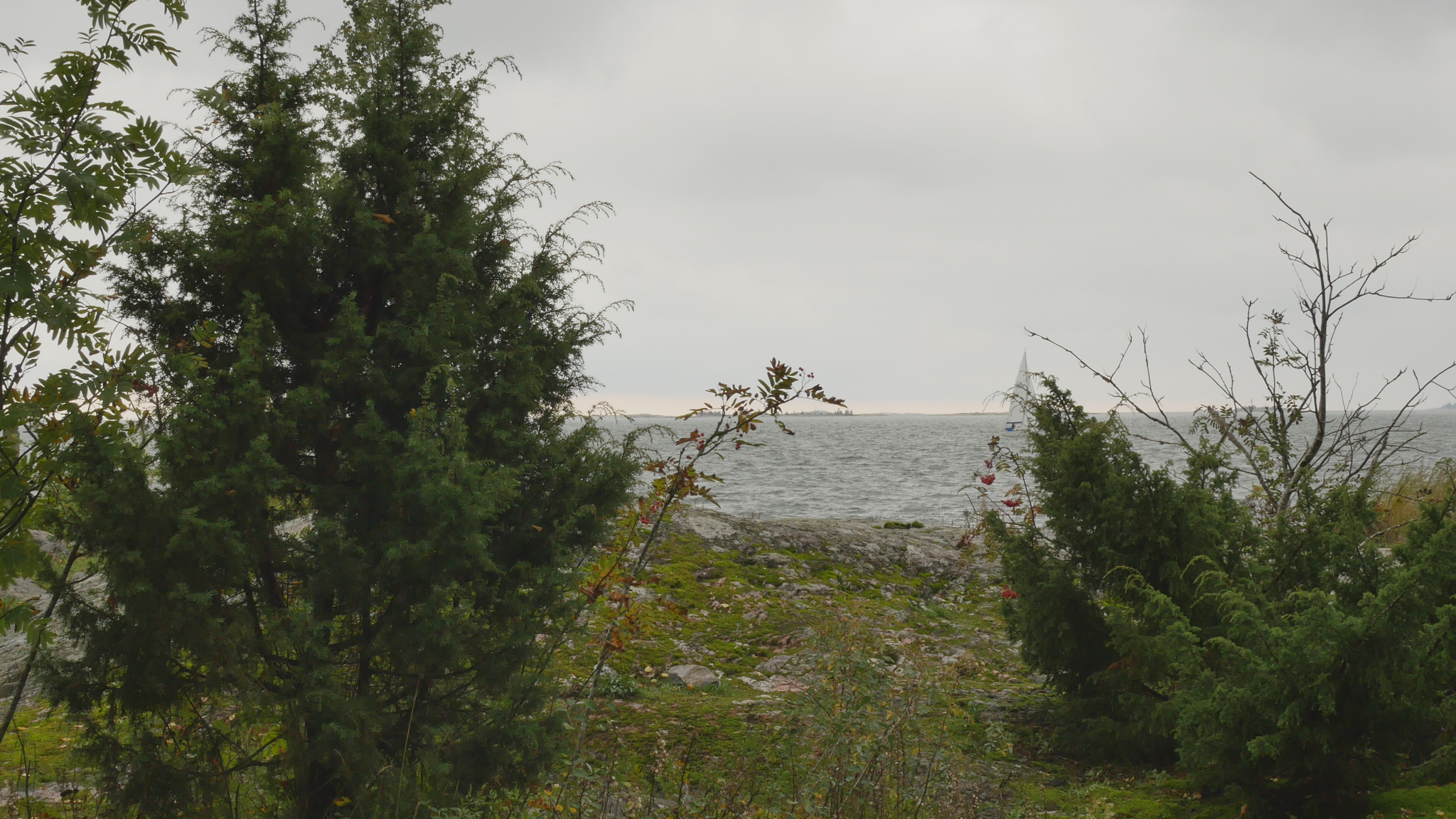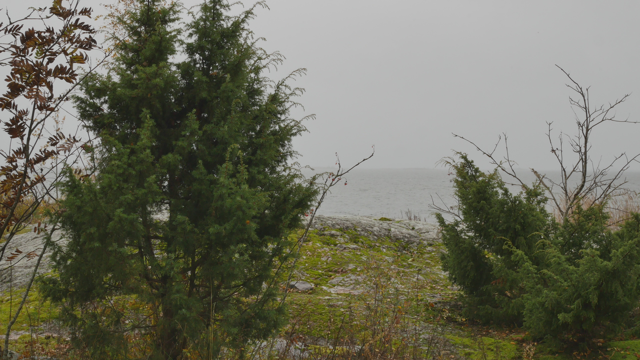 Hello juniper, nice to see you this November Saturday. The weather is really strange because it's completely calm. Now there is a motorboat passing but otherwise it's really silent, too. There were couples walking on the cliffs, after all it is Saturday, and I could even hear their laughs but now at least one of the couples went away. I actually planned to go to Harakka island today because now when the ferry boat is no longer running it's not so easy to get there and one option is to row with the small rowing boat Korento, but I don't like growing alone so I asked my colleagues if any of them would, or the two of them that we share the boat with, if they would like to go today and they didn't, so I decided I would come to you. But now when I'm here and I look at the sea, which is so calm and still, I realise I could very well have rowed to the island on my own as well. But I'm here now, so good to see you and as always you look sort of extraordinary fresh compared to all the dying or dead looking deciduous trees around, like the birch. Of course, I know they're not dead, but they look dead compared to you. And the name of the month of November, marraskuu in Finnish, marras, it actually means, it is old Finnish so I wouldn’t know, I had to check this, the word means dead or in the process of dying, about to die. And of course, this is the time of year when well, nature is sort of dying or going to sleep for the winter. But not you, you as you and not as in yew the relative of yours the yew tree, I don't know if I pronounce it correctly, but I was reading about the yew tree on the ferry when I came here in a book called Elderflora: A Modern History of Ancient Trees by Jared Farmer, which I finally received. I heard a talk by him earlier and was fascinated by his ideas and now I'm reading the book, which is very entertainingly written. I know you are not of the same family as the Yews but still there is some resemblance because they’re conifers, too. They are poisonous and then they were very much in need in mediaeval times, which I didn't know, not for the poison but because their wood was so good for creating bows. So, when at the time when the armies were fighting with bows and arrows yew trees where sort of cut down almost to extinction in Europe. But what I plan to talk to you about was not about yew trees of course but about technique, identity, and place. And that's because I listened to a lecture or talk by Ben Spatz, like a demonstration lecture for doctoral candidates actually, online, and he has written a book called, let me see, Race and Forms of Knowledge: Technique, Identity and Place in Artistic Research. I haven't read the book, but he had an exercise based on his ideas in that book for the doctoral candidates and I thought that was fascinating. First of all, to choose an image of one’s practise and then to look at that image and try to analyse in which ways you could say something about technique, or about identity or about place from that image. Or what those, what that image would sort of reveal of your practise in those respects, which are of course entangled very much, which he explained briefly. And if I then, I made the exercise or began making the exercise with an image that I happened to have on my computer, but if we now think of our practise here and the image that is produced of our conversation on video, so in the same way as with the image I chose I think technique is very easy to find on several levels and place is also very obvious, you could say on several levels, but at least on this physical level. But identity is so much more difficult. And of course, then I immediately feel ashamed, because that's what sort of middle-class white people always say. They consider themselves as unmarked, that their identity is somehow unimportant, because they don't suffer so much from discrimination, they're privileged, on the contrary. But of course, I mean related to knowledge. And I always feel like I don't have an identity that would have a special knowledge, because I'm not racialized, or I don't have a disability except age of course. But then my first idea was of course that there are some things that I know from experience because I'm a woman, and an unmarried, childless woman at that, a spinster actually, so there are some forms of knowledge that I know from experience that other people wouldn't know. And then when I thought about it a little bit, there is also the idea of language, identity in terms of language, because I'm a Finnish Swede and also a Finn through my mother so I have this dual identity, these two languages. And being a Finnish Swede is a minority and for many people it's very important. It hasn't been so important for me because I've sort of fluently switched between those two identities. But if I think about it so the reason that I speak English with you is exactly because language has a meaning. Language is not one and self-evident. So, I speak Swedish with a yew in Stockholm, not yew, sorry. Now I'm all about yews because I've been reading about yews, I call you a yew. You are not a yew, you are a juniper, excuse me for that. So, dear juniper, I speak Swedish with a juniper in Stockholm and I speak Finnish with a juniper on Harakka island. And then now I speak English with you because language matters. And maybe it wouldn't matter in the same way if I wouldn't be bilingual to begin with. So, actually there are some aspects of identity that make a difference for our conversation as well. And yes, I know, language makes a difference because I don't speak ‘juniperish’, I don't, I cannot deliberately use volatile chemicals to respond to your volatile chemicals for instance. But of course, then when I said technique is so easy, with that I mean there is like technological technique involved here because there is this phone in my hand, which serves as the microphone. And then there is the video camera on tripod nearby, which records our im