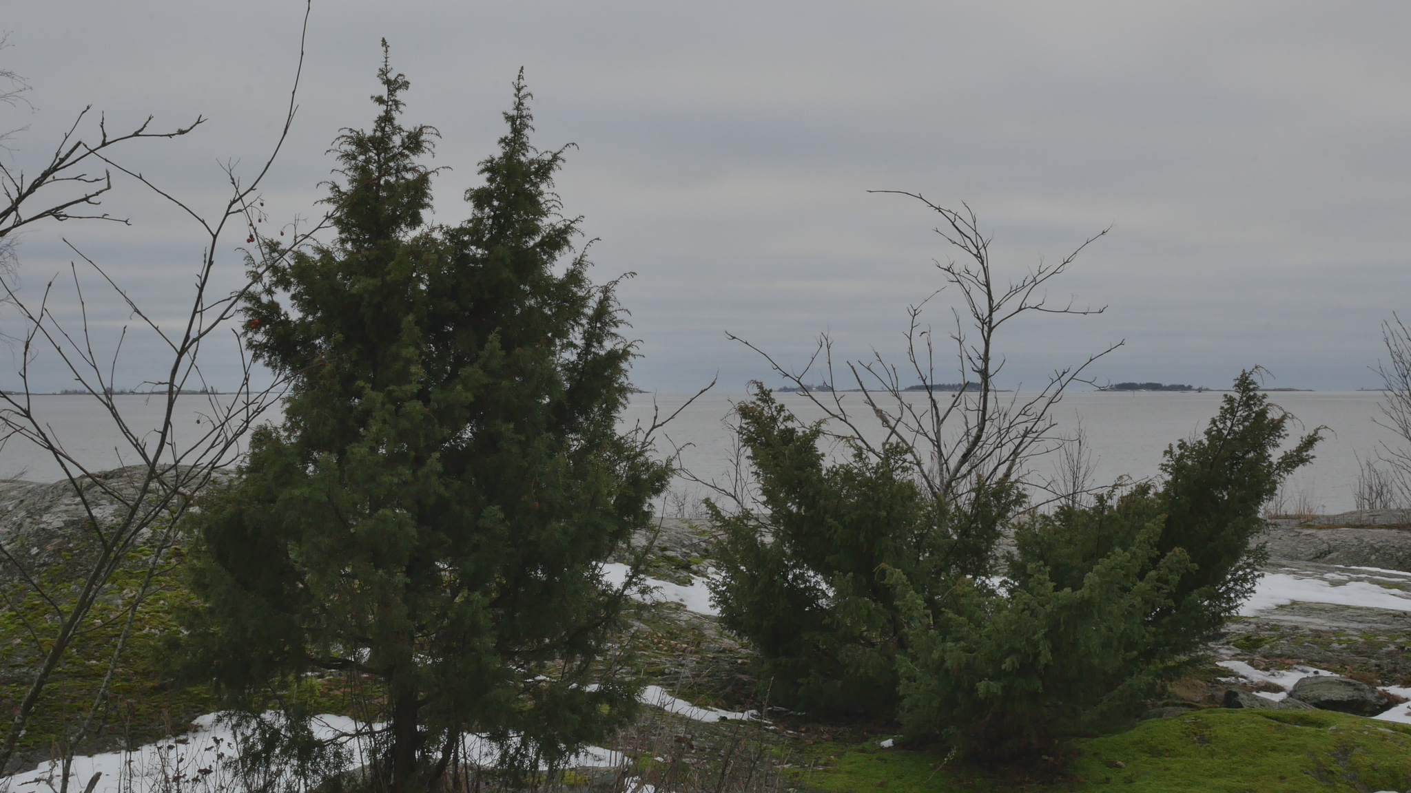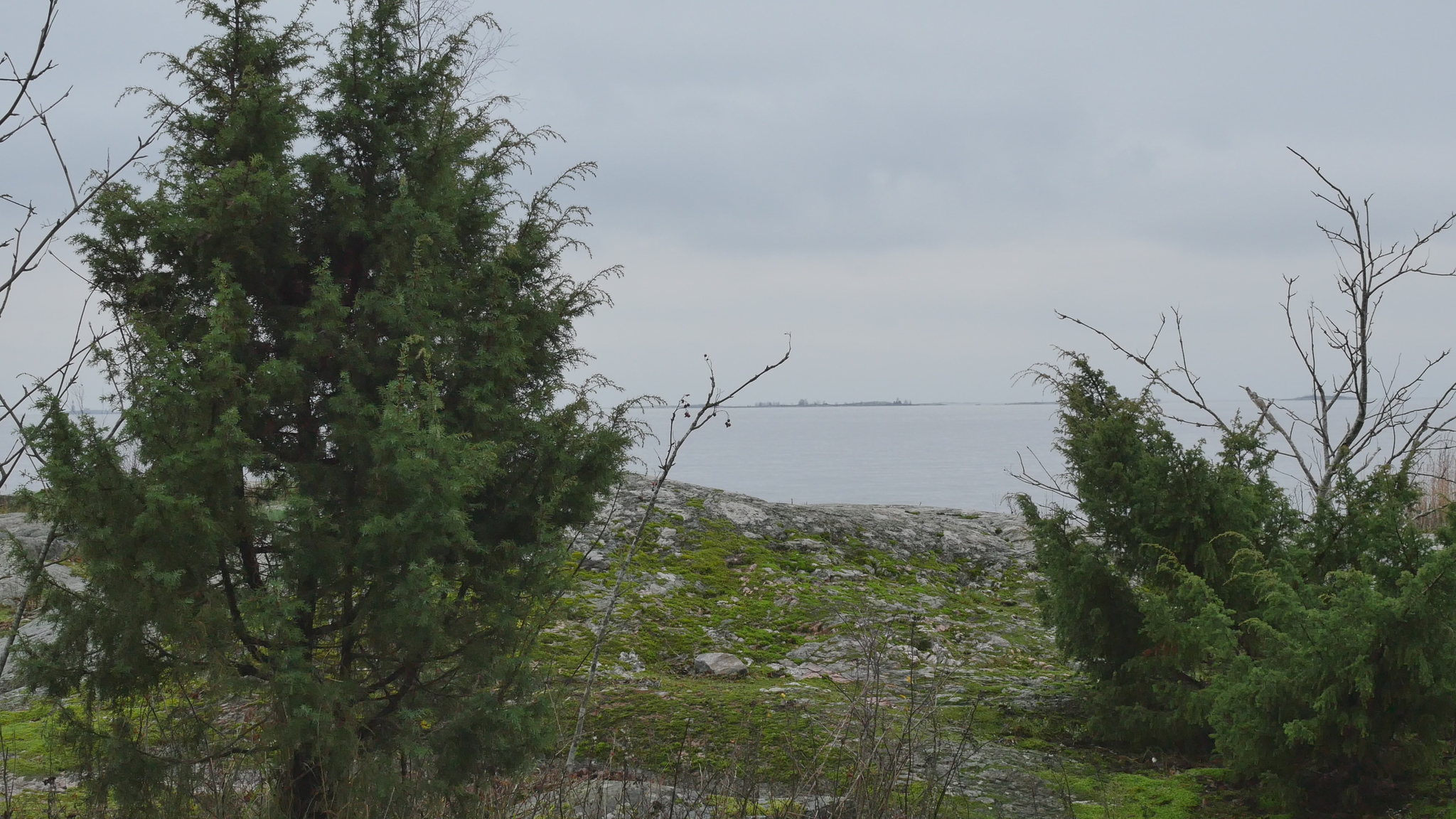 Hello Juniper or esteemed Juniper, junipers, hello to you as well over there. Nice to be here for the first time recording our encounter. I was here once before Christmas and found you, so to speak, finally. I was looking all over the islands and there are not many junipers in this cluster of islands called Suomenlinna sea fortress. We are right now on the north-western most island, the one closest to the mainland but also closest to Harakka Island where I usually work and have my studio since many years, which was originally part of this sea fortress as well. When I came here before Christmas to look for junipers, I found one towards the South or south-east near the old submarine boat that is there on the shore, but in a place that was not accessible. And then I found a small juniper right next to the road on the very southernmost island. But finding you here, there's actually three of you growing nearby on this north-western island, which is called I think Länsi Mustasaari, the western black island, was a very nice encounter, because you are here somewhat secluded or in the tranquil place and very, very beautiful. So, I hope you don't mind, or I'm asking for your consent to come and visit you every now and then or maybe approximately once a month and to try to talk with you or have a conversation with you and even touch you as I do now, holding on to a branch of yours.