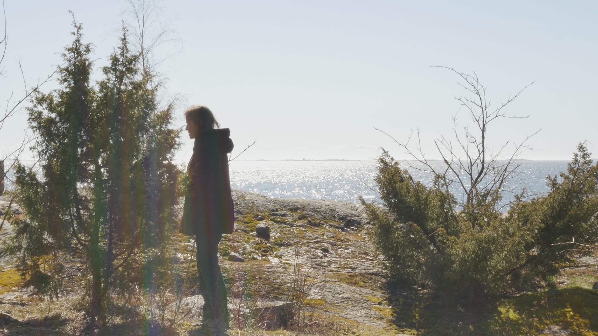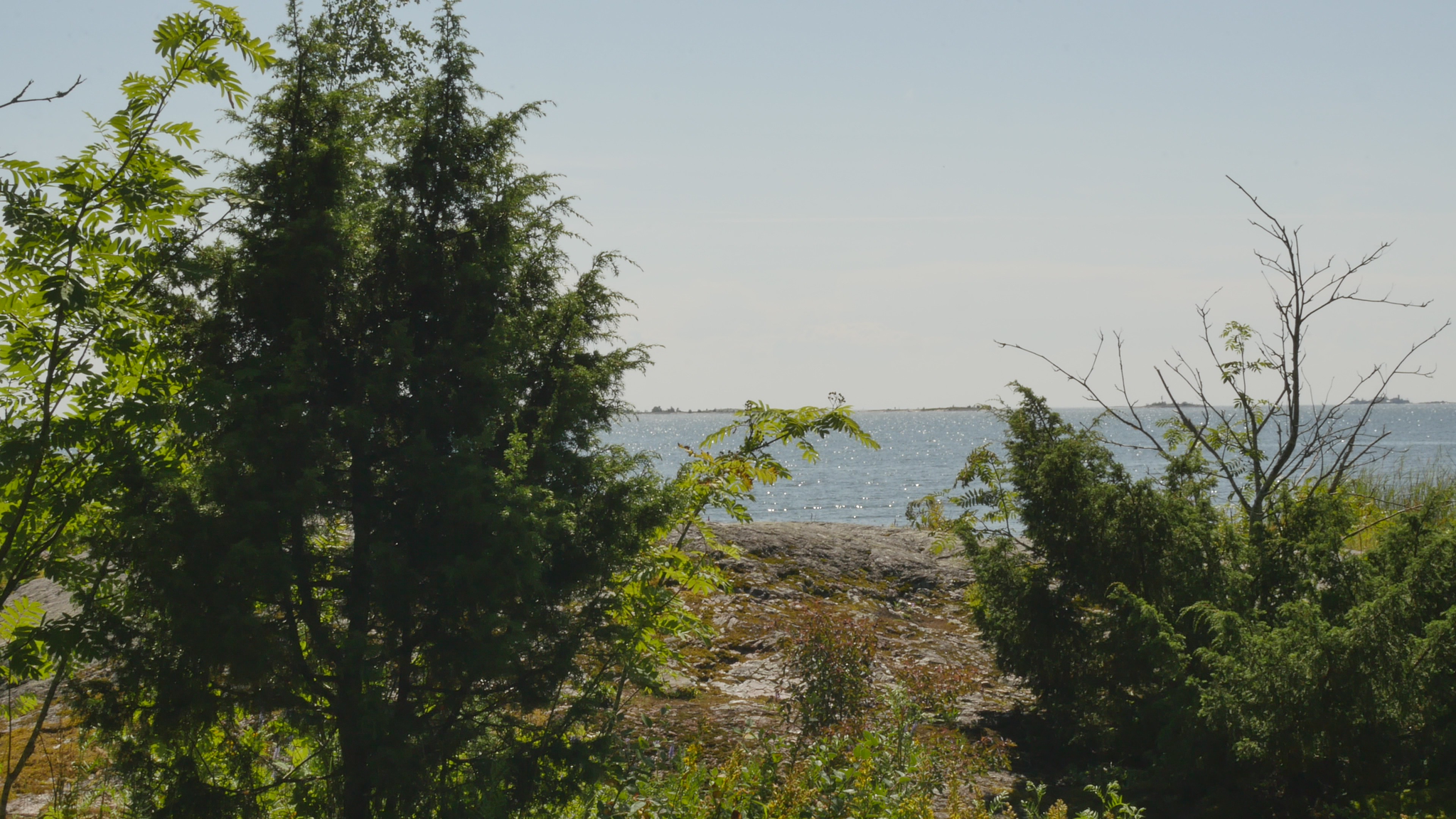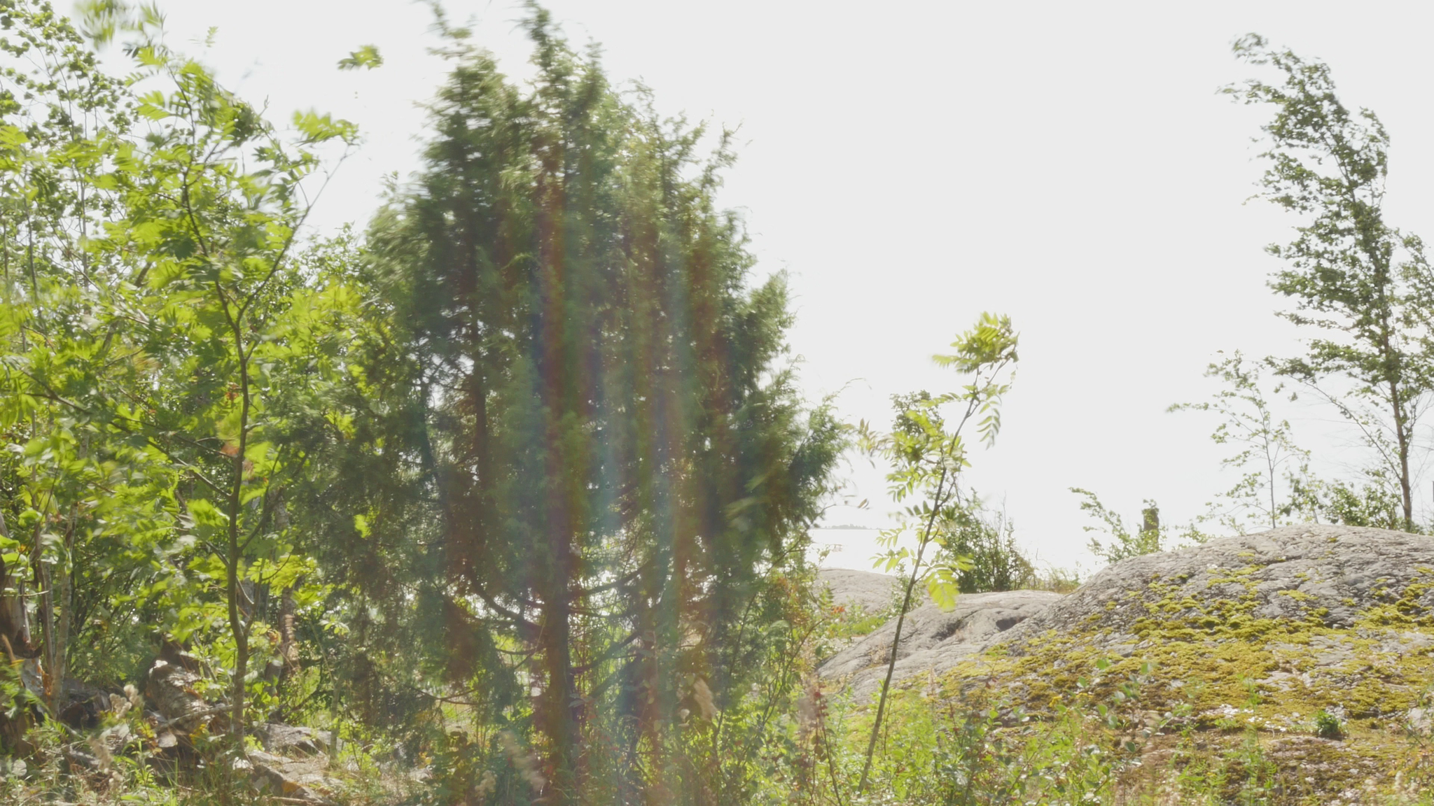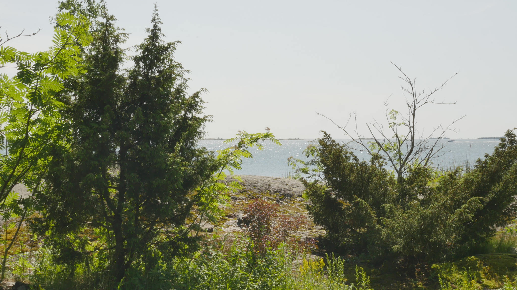 I have been working with junipers before more than ten years ago and at that time I was often holding on the junipers, but I was covered in a green scarf and that was very different. I was not trying to talk with you at all. And that is what I'm trying to do this time and to learn more about you. The reason why I came here to the sea fortress is because I hope to find studio here, to be able to rent a small working space here next year. Because I have to leave my studio on Harakka, and because Suomenlinna is sort of the mother island of Harakka, too, in ancient times at least. It felt somehow natural to come here because I want to be by the sea. But I've been also talking a lot with pine trees and in some sense pine trees are of course very, very beautiful and exciting, but I always when I worked with you, junipers, I always thought you were very special. One reason is maybe because my grandmother, my mother's mother loved junipers. And in the garden or in the area around the cottage in the countryside we were never allowed to cut down any junipers so there's plenty of old and young and small junipers growing all around the house, I think. There is a lot of mythological knowledge about junipers also in in Finnish folklore, but globally in different cultures. And I read some of it on the ferry coming here. And there was one detail that I remember, which I thought was funny, which was this idea that if you were to pick juniper berries you should remove your hat or your cap. And of course, removing your cap is a sign of respect so maybe that was thought of as a sign of respect, too. I don't see any berries on you, so I suppose you are a male juniper because the junipers are either male or female. And I guess the female ones have berries but sometimes also the form is different. So, you're more upright so you could be a male one also based on the form, whereas your neighbour nearby, closer to the sea, is more like spread out and it could be a female one. But that is not always correct because I met a juniper in Stockholm, and it was very tall, but it had berries. Now I say it because in finish we can say ‘se’ even of human being, so it doesn't mean that I think you're dead or an object if I call you an ‘it’. But in English maybe I should say you, they, or he, maybe you are he, I don't know. Today it's a very beautiful day to begin these conversations because there is almost no wind so this recording is not disturbed by the sound of the wind. I don't have so much to tell you yet so it's more like getting to know you a little bit. I also stand sort of partly behind you because here you have a small branch that I can easily hold onto even though it's very small so it's not really for support. I can see that your trunk is substantial so you're not a youngster even though you're not that tall. But I guess this is also not a very easy place to live in because normally you would have quite a lot of wind here on the cliffs. B I also know that junipers are very strong and resilient and can live in harsh circumstances. So yeah, I respect you for that. And in many cultures, you're the symbol of both death and rebirth. I don't think in Finnish folklore, it's not necessary that, but the smoke from your branches is used for cleaning purposes, also cleaning sort of spiritual cleaning. I've never experienced that, but they say that you can make like a ‘vihta’, what we usually, a broom out of Birch leaves, which we use to clean ourselves with in the Sauna. That you can make a broom out of juniper branches and have your aroma in the sauna, but with your sharp small needles using you for sort of brushing myself with, well, that's probably not very pleasant. But I thought I'd ask permission from you to take a small branch of you or maybe two, to put on my door, because that will protect the house from evil spirits and witches and so on. And then maybe another small branch to try to see if I could burn it to get some smoke to clean inside the house. I will try to take the branches from down on you, so not from the top branches and I hope it doesn't hurt too much. I'm very grateful and I realise it's quite rude to take something from you already during this our first meeting. But I thought it would be also a symbol so I could carry you with me in some way. And for the next meeting I will try to find something I could give you as a gift in exchange, but at the moment I don't have anything with me. I apologise for that. Anyway, thank you for this first encounter and I look forward to our next meeting, and yes thank you, thank you. And take care.