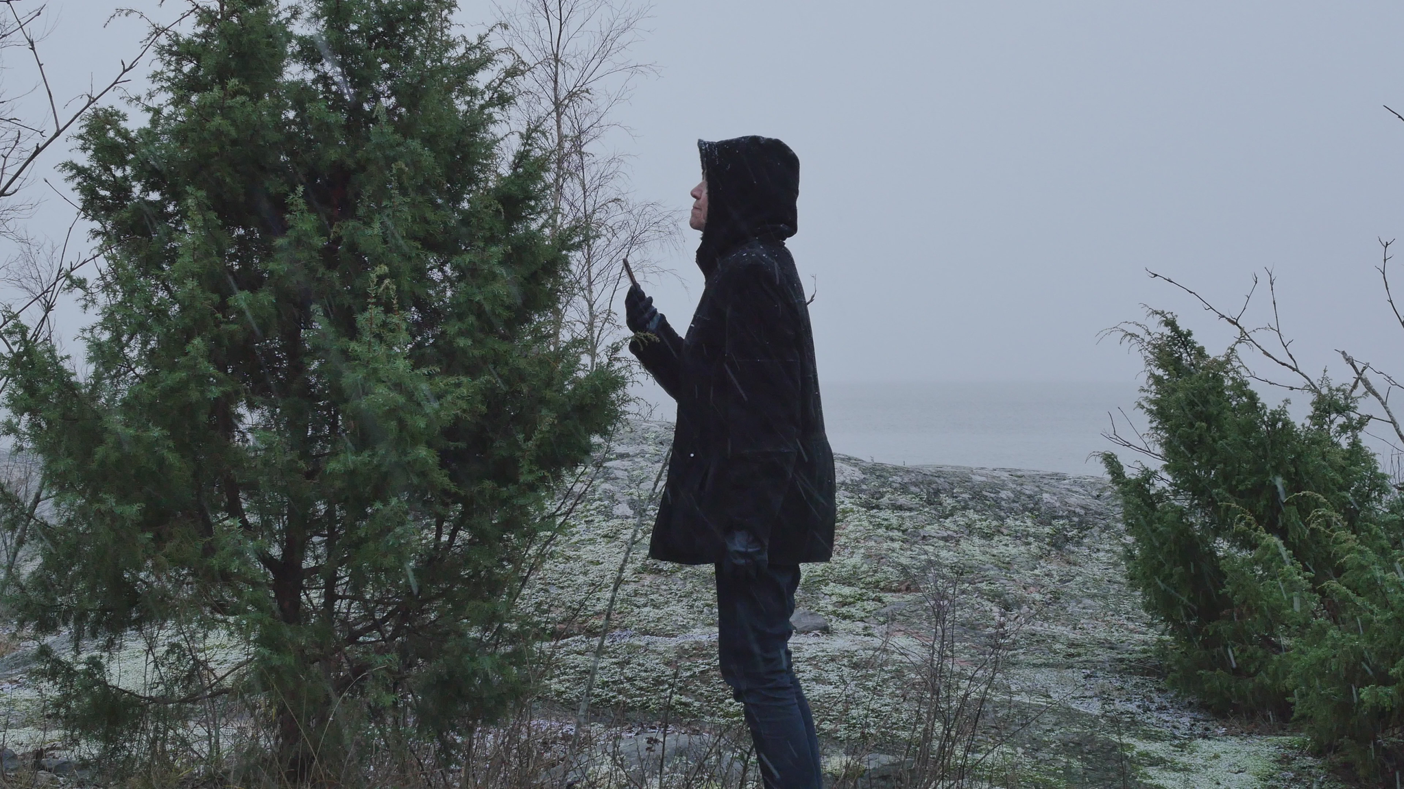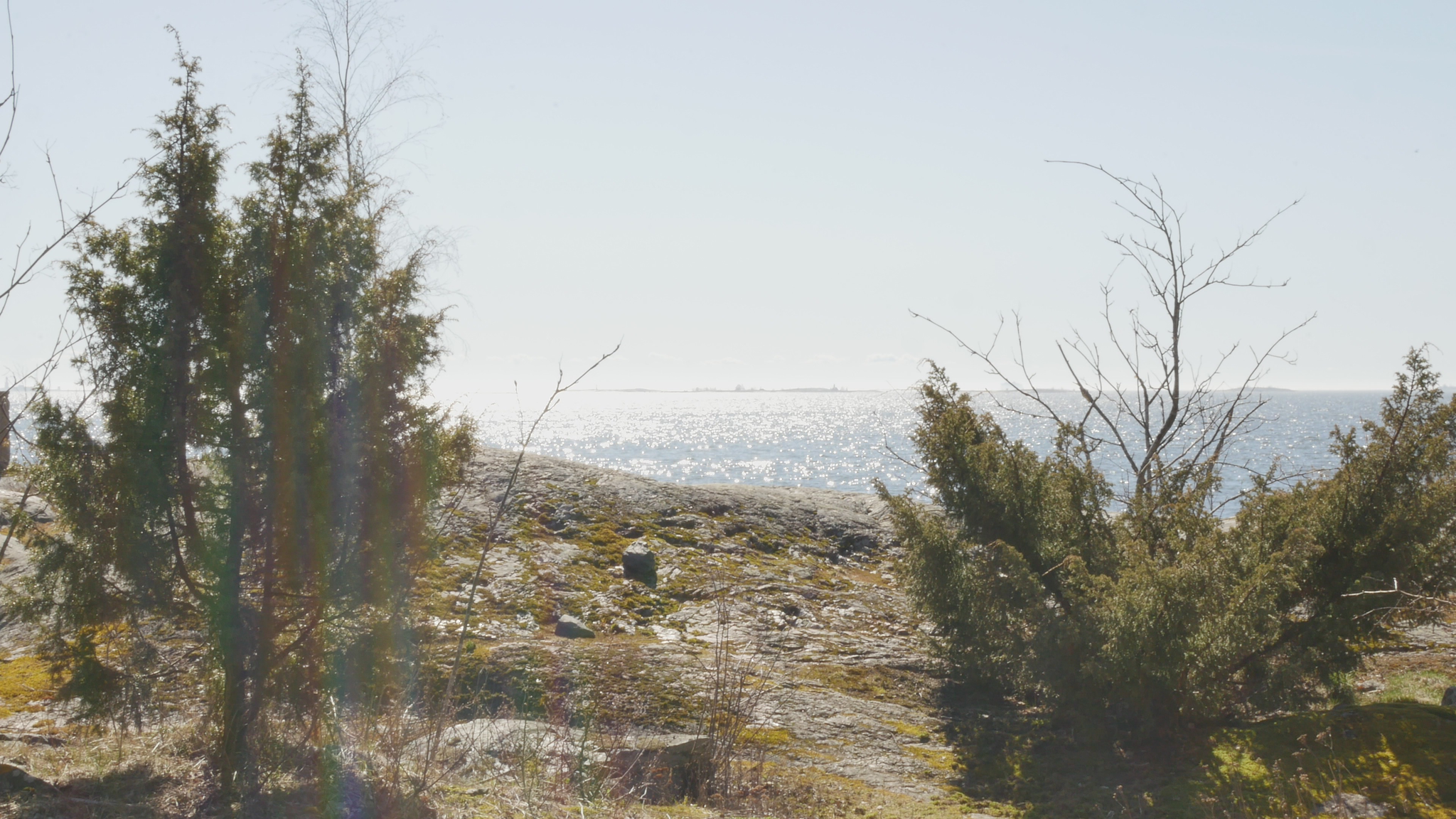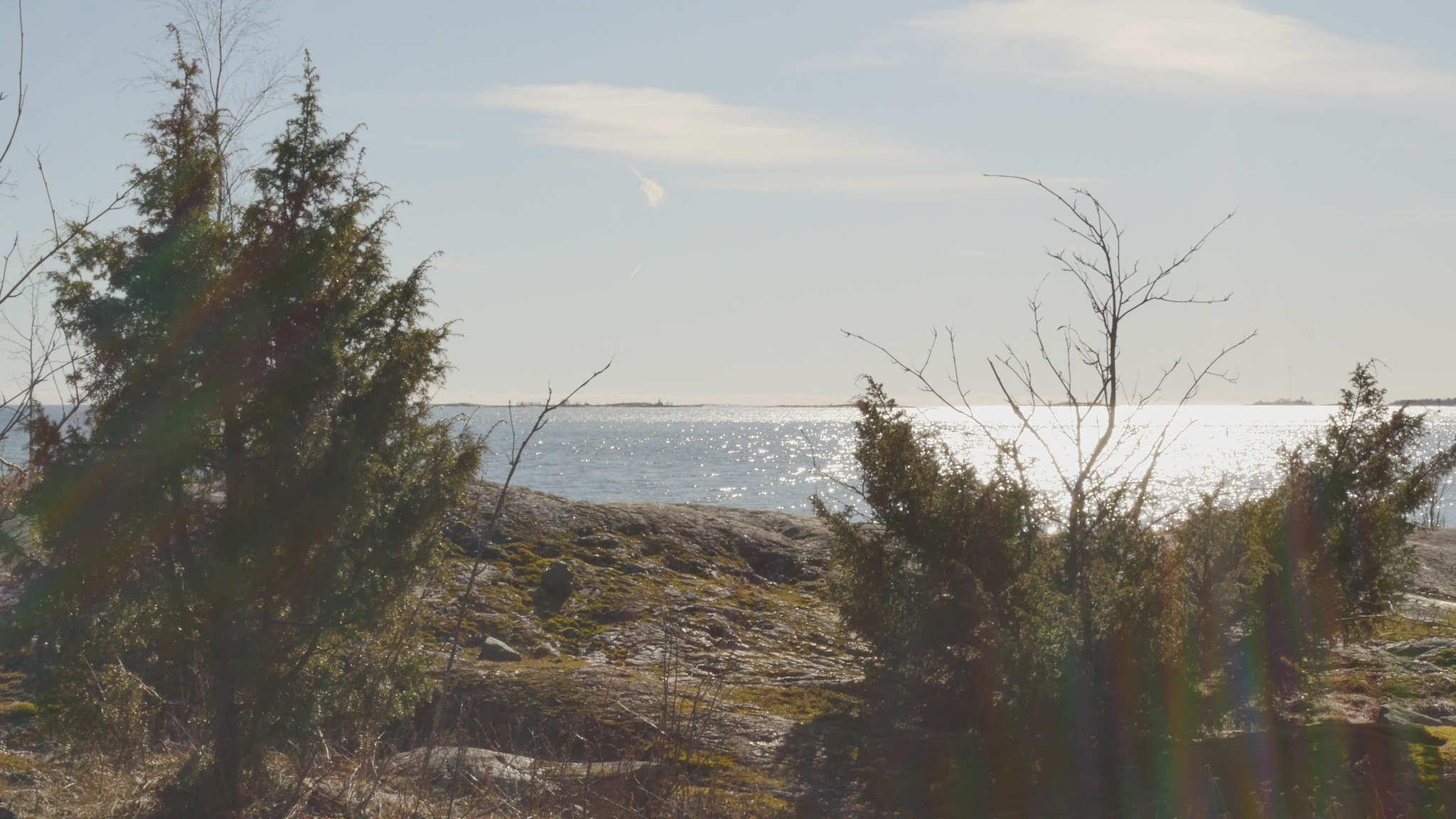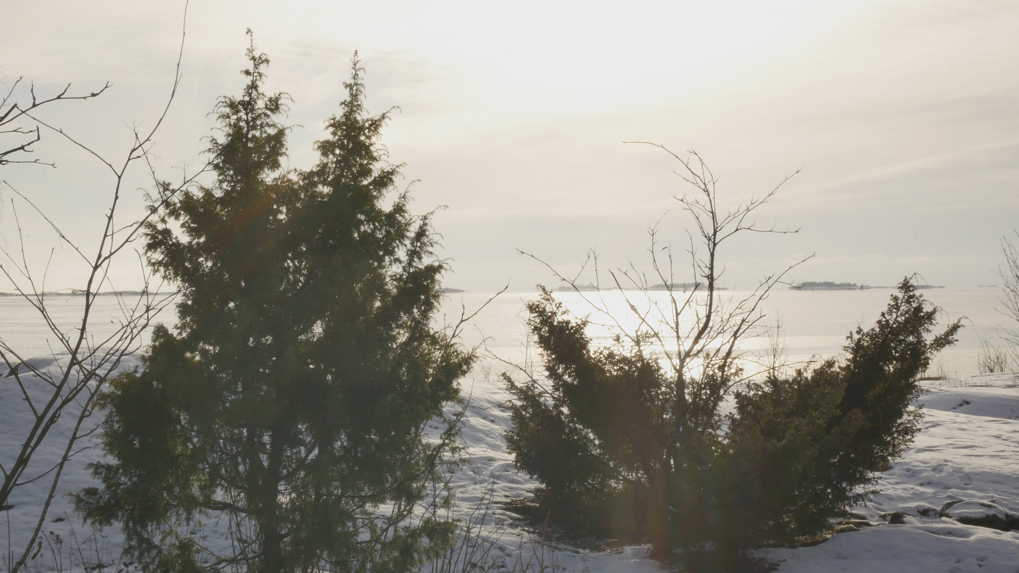 Hello dear Juniper, nice to see you again on this cold sunny Sunday afternoon. I didn't realise that the sun will shine directly on the camera at this time of the day so now I know I should come to you earlier, although of course the location of the sun will change later in spring. Now the winter is finally here. January was exceptionally warm, and it felt like there would be no winter at all, but now it's cold. It's not exceptionally cold at all but because of the warm January it feels colder. It's maybe -10 or now in the sun maybe -8 but the sea is slowly freezing. The small bay here in the Western Black Island or how you translate the name Länsi-Mustasaari is already frozen, but of course the open sea is open. I have not visited Suomenlinna Sea Fortress since we last met in January and not done anything to advance my finding a studio here. But I've looked at the website and no, there are no empty studios at the moment. I also I thought about talking with you about the text I more or less happened to read last night, a short polemical article. I don’t remember the exact title but something like Sustainable Art Should not be Placed in Nature [Sustainable art should not be installed at natural sites] by Riccardo Guiano [Guarino] or something like that, I don't know the writer. And he was very critical about art being placed in natural environments and in natural parks and well, anywhere in nature and especially on spectacular sites. Partly because they might do some harm to the local ecosystems but especially because they foster sort of a consumerist attitude to nature, and instead of an appreciation of nature for its own sake and its slow processes and so on. And that makes sense of course. He has a lot of examples from Christo’s huge packaging efforts to Andy Goldsworthy’s small very subtle and you would imagine very ecological works created of natural materials that will then melt into the surroundings, like leaves or materials from nature. But of course, this idea of also inviting people to go to, in large amounts, to spectacular sights to witness some strange sculpture or bench or frame there, it’s in a way not such a good idea. The only works that he somehow accepts or mentions as positive examples are by Agnes Denes, the classic work the Wheatfield in New York, but also the Tree Mountain, which is in Ylöjärvi in Finland, where a huge amount [number] of trees were planted on a site where they had taken gravel or other minerals and sort of, so the planting of the trees was like a restoration project. And of course, that's something beautiful to think that art could be both aesthetically interesting and restoring some damaged environments, and there is quite a lot of such things done. But of course, I then also thought about what we're doing here together, our so-called collaboration when I come and visit you and make images and sound works out of our encounter. Of course, I'm not doing much damage to the site; I triy to tread carefully although I'm trampling the plants where I stand. And I'm not inviting huge amounts of people to assemble here and destroy the surroundings. And anyway, this is an area, a public parc as part of Helsinki where people come anyway in masses and destroy the environment even without any art as an excuse. But the challenge of how to collaborate in a manner that would be beneficial for you, too, that is a constant problem. And I haven't been able to solve that in my previous experiments. And to be honest I don't expect to be able to solve that now either. But even though the text was provocative and as an artist I felt it was like accusing artists for [of] being hypocrites and claiming that the damage they do is counterbalanced with the positive interest that they evoke in people towards nature and so on. His condemnation was quite harsh but in a way to some extent I agree. So, it's not, a lot of so-called environmental art where you do stuff out in nature and then leave the materials there to rot and to participate in the natural life cycles; well sometimes they feel almost like litter. And I agree with that even though there are some very beautiful works, too. And I've never been really, I've never felt like I would like to place something in nature, to sort of create a work that would participate in the natural environment. I'm always taking away things from you. It's almost like picking berries or mushrooms and I'm collecting images and then I make my cakes or pies with them and hope that somebody might eat them. And I'm not saying it's in any way a more sustainable way of doing art, but it's nevertheless, it's different. So, I understand his criticism although as an artist I'd like to defend the artists who want to work out in nature and sort of show their love to their surroundings in that manner. I don't know if it's really, I don't know if I can say that I feel love towards you; we hardly know each other. But I'm I'm really curious about you and I would love to be able to initiate a more reciprocal relationship with you. But as I said before I haven't yet found a proper way to do that. In any case I'm very grateful that you allow me to spend time with you. And somehow, I imagine – and now it's of course a risk that I do imagine – but I imagine that you don't mind me standing here breathing some carbon dioxide on your needles or, well, making sounds that you might distinguish. I do appreciate your generosity and I wish you a really nice rest of February and beginning of March and enjoy the light that will now increase. And take care.