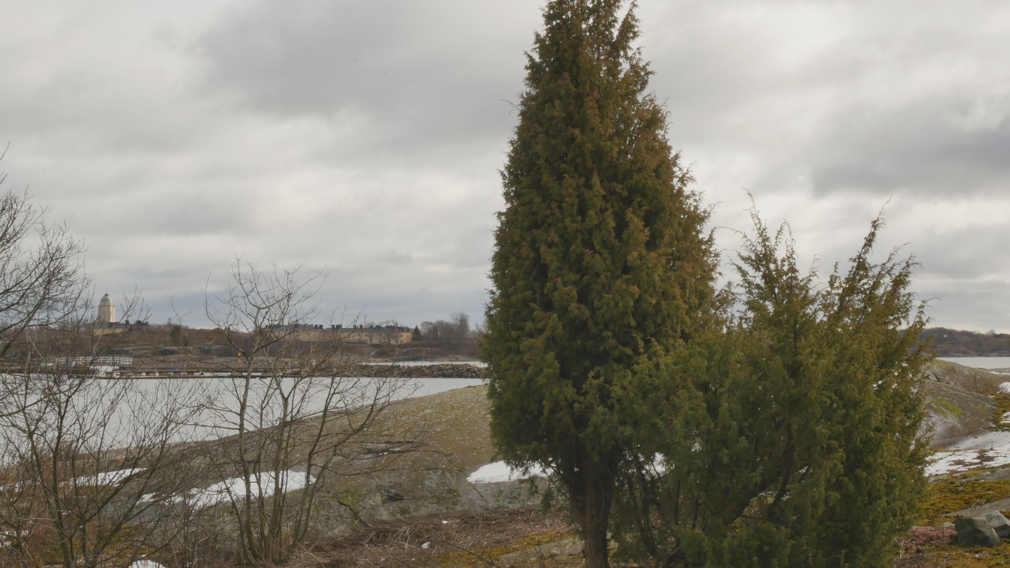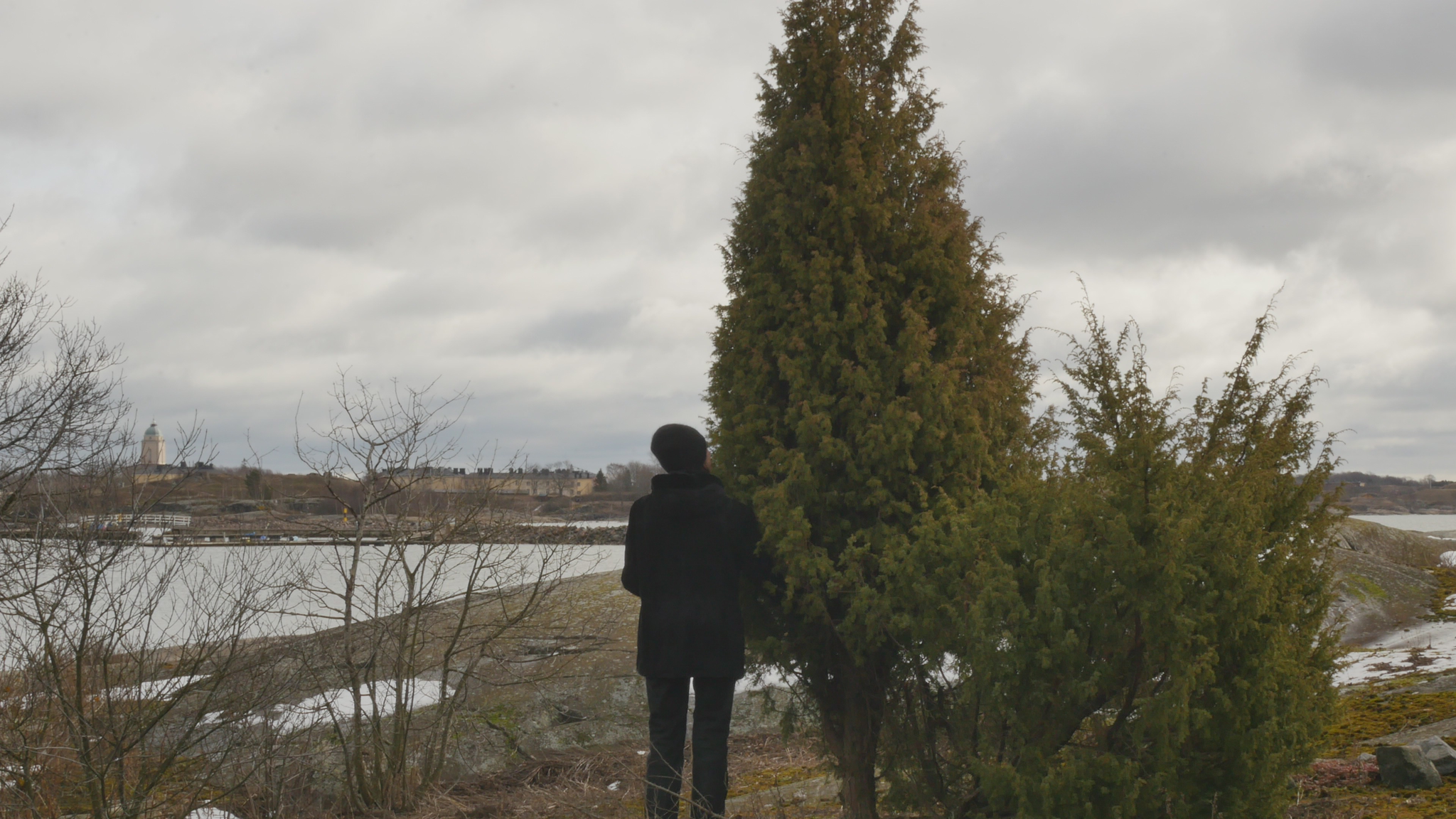 Hello, Juniper, good Friday morning. Just now, a little mouse rushed across the dead leaves, clearly visible. It is not used to being disturbed here. I understand, the island is empty, except that the art house is still undergoing renovations. I don't remember any major renovations being done during the twenty-nine or twenty-eight and a half years that I have been here. I don't remember such a big renovation, or in fact any renovation at all, except for pipe renovations in the house when the old pipes broke or something like that. And of course, as I mentioned, there was that huge excavation project, not in the building but along the shore, when some cable had to be placed to Suomenlinna or wherever it was. But now, in addition to the window renovation, which is still ongoing, but my windows are now finished and look great, there is a roof renovation coming up, which means nice new spaces for the new tenants. In addition, I heard today that Saara and Eddy are leaving at the end of the year, so I still have many months to live with the new caretakers or custodians of the island, whom I have not yet met. But mentally, I am already leaving. This is an important moment, as it is our last meeting, the December meeting, and it is taking place well before Christmas because I don't know how I will get here during the holidays. This morning, Eddy gave me a ride here. And it feels kind of crazy when I think that this is our last meeting, not only because this year is coming to an end, but also because I have decided that I will not continue these discussions with other trees from the beginning of next year. I might talk to other trees again sometime, but I don't plan to continue these kinds of monthly or otherwise regular conversations. Instead, I'm waiting to see what my new working conditions and a new studio, which I still haven't found or gotten, will bring. But this is none of your business. I am so focused on the future, although I promised to tell you about the past, but I feel like I don't even remember it anymore. But of course, I remember, my body remembers somewhere in the cells of my brain everything I have experienced here with you and with other junipers and people and on the rocks and wherever else on this island, so it is stored somewhere inside me as an experience in some way. The day after tomorrow is the winter solstice, the moment when darkness is at its strongest and after that light begins to increase again. Pagan Christmas, or Yuletide as it is called in English, should be celebrated by preparing for the new year, but also by resting. It's great that the new windows were finished before the turn of the year. I'm not going to put the curtains back up, because the new tenants can get new curtains. But I did put the potted plants back on the windowsills to get some light now that there is so little of it. You look well, with just a few small dry needles here and there, and a few small twigs, but now we can't complain about drought, because it's damp, wet, surprisingly warm, not even close to zero but well above freezing. The wind is quite strong, but it's coming from the southwest, so you're protecting me here. I don't really know what to tell you, and on the other hand, I am too impatient to really listen to what you could tell me. I'm still confused about how tall you are, but maybe there's enough soil here that you've gotten your roots so deep that you can stay upright, even though it looks like you're growing right on the rock. I don't know what kind of roots you have. I know that spruce trees have roots that spread sideways and that pine trees have taproots that penetrate deep into the ground, but I don't really know about juniper roots. I can't see them on the surface, so maybe you also have roots that penetrate deeper. Well, you will see all the big changes here, what kind of people will come here, but probably partly the same as now. Hopefully the island will remain, or the artists' house will remain in use by artists, let's hope so. The Environmental Center will probably keep hold of the nature house and its own activities here. And I can come here to visit when I get, or I don't even need to buy a card, just pay a one-time fee, but actually, since I still have a studio here until May and the move will take time, I'll definitely buy a season ticket for May-June, May, no, April-May, because I'll have to go back and forth. But this is going to be a short conversation, I can't think of anything to chat about. I could tell you that I have been at a conference in Fortaleza, Brazil, and I could tell you that my two cats are doing well and waiting at home because they are not allowed to come here to the island with me. And they won't be allowed in my new studio either, when I get one, because I want to keep it cat-free, perhaps have poisonous houseplants there. I could tell you all sorts of things, but I know it's not important to you. Perhaps, in the end, I'll just listen to you for a while, even though now I can hear more the roar of the sea as the waves crash against the rocks on the other side, and then some kind of engine noise coming from the harbour area or wherever it's coming from. And the wind of course. But still, as a kind of farewell, I would like to listen to you for a moment. ---