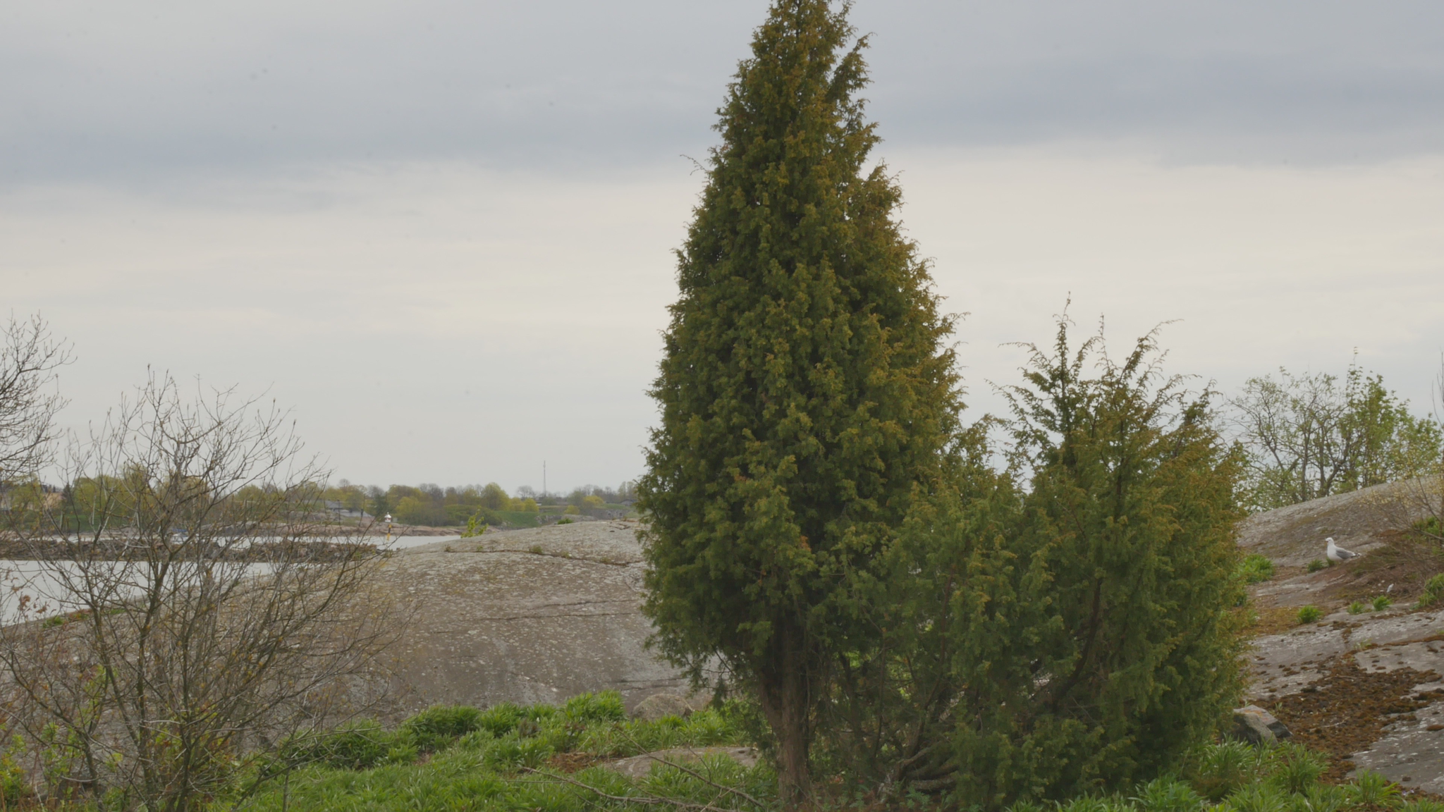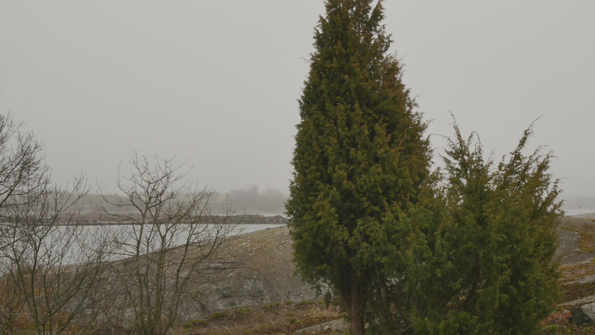 Hello juniper, you are looking well and green. I can't see any buds, but it could be that you just have a lot of fresh new needles. Happy Easter. It's Good Friday, the eighteenth of April and today the water bus or ferry, the boat to Särkkä, the boat of the Seafarers is running for the first time, once every hour and the last boat leaves at 6 o'clock, but still. And this morning there was a heavy fog, which is now slowly clearing up. And otherwise, it's supposed to rain and be partly cloudy, so I thought I'd come and see you as soon as I could. I remembered that I was here once for Easter sort of round the clock, but I think it was Easter Saturday and Sunday two thousand and two. Or was it even that it wasn't until the following goat year, that is, the day and night of the year of the horse, the first year of Animal Years series was Easter. And that's when I was sitting on a rock there on west bank. Now the seagulls are getting nervous, am I the reason for their nervousness or was it something else. Well, anyway, back then I was sitting once every hour all day long and I had an old video camera that had a temperature function that was showing the human figure in a warm, lighter grey at night. I think it was on game cameras, at least they used to have them. And that was the first day and night, Easter, but I remember it was cold at night. At that time, it was the early 2000s, there were not so many geese, but there were seagulls, and I came here already in 1997. Yesterday, in the evening, I was browsing through videos on Facebook, of all the reliable sources of information in the world, and there happened to be someone there who explained that, apart from humans, there are only two other large mammals in which the females have menopause, in other words, that females do not give birth to young throughout their lives but stop giving birth at some point in the same way as humans. And he then wondered what these species have in common, elephants and killer sharks and they're big but they also have a kind of culture, if you like, or a way of life that requires learning. That is, that the young must learn things and humans in particular must learn things, and that there is the kind of purpose, for what purpose females have to spend a quarter or even more than a quarter of their lives without having children, without having young. And it is precisely to teach these young and the young of those young, or grandchildren. And the same speaker then also joked that human females live much longer than the human males. I don't know if this is true of elephants and killer sharks. But that, in a way, was followed by another speaker who, how shall I put it, really passionately talked about how all - and I do not know whether this is true, but if it is, it is pretty wild - by all standards, unmarried and childless women live longer than married women and women with children, they commit fewer suicides, they are less likely to die violently, they have better health for longer, and so on. In other words, being single, at least in terms of life expectancy and this kind of basic happiness, would be beneficial for women. But not for men. That is, married men live longer than unmarried men and are less likely to commit suicide and less likely to be victims of violence and so on and so on. And then this speaker took this as an argument for why women are sort of trained to give their life energy to their husbands and support them and live through them, and that this goes as far as giving up several years of their lives to their husbands, so to speak. Well, that sounds kind of demagogic but it's comforting because nothing in this culture really supports or values unmarried women. But now I'm beginning to understand it because it's like, it's wrong if women won't sacrifice themselves to be married and child-rearing women. Well, but these two speakers, on the one hand, their knowledge supported each other, but on the other hand, it's clear that if you think about the function of teaching and passing on knowledge and passing on culture, somebody must make children, too. So, what does this have to do with life here on Harakka and your life? Not much, of course. I just thought about it because I remembered that when I came here I felt that the culture here was very macho or macho like or the division of labour between men and women was somehow strong. And that is often the case in rural areas or even among indigenous peoples, although there are of course many different kinds, but the division of labour, the division of what is women's work and what is men's work, is often very strong. That doesn't mean, of course, that it automatically has to be macho. But I remember that I somehow felt it was emphasised. Not in the sense of, of course there were some guys who did metalwork and Paavo Metsämäki, who was the king of the island and a caretaker, was a macho guy in his own way and many others. And apart from that, like the women were doing textile art and baking lovely cakes and organising parties, and that was my first impression. Well then, and of course the first group of artists who came here in the late eighties, well before me, it was such a tight community in its own way, with its own customs and so on, that I came sort of to a set table.