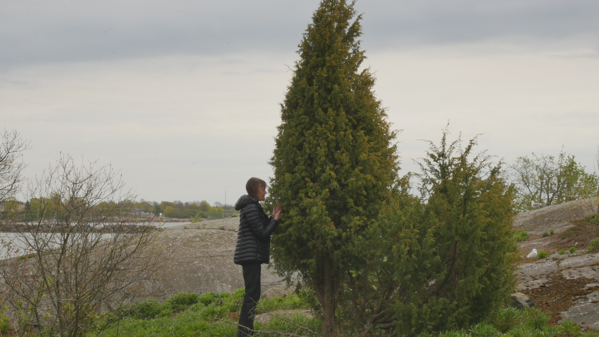 Yes, thank you for everything, and I thank the whole island through you. Thank you, Harakka, for these years, thank you to all the creatures that live here on the island, have lived here, and will live here, and thank you, thank you, handsome, tall juniper tree. Beautiful, blossoming, wonderful years to you. Farewell.