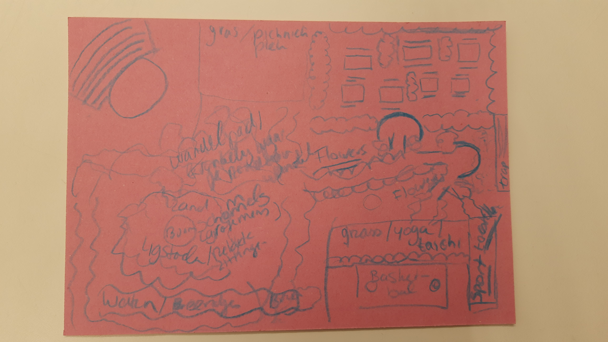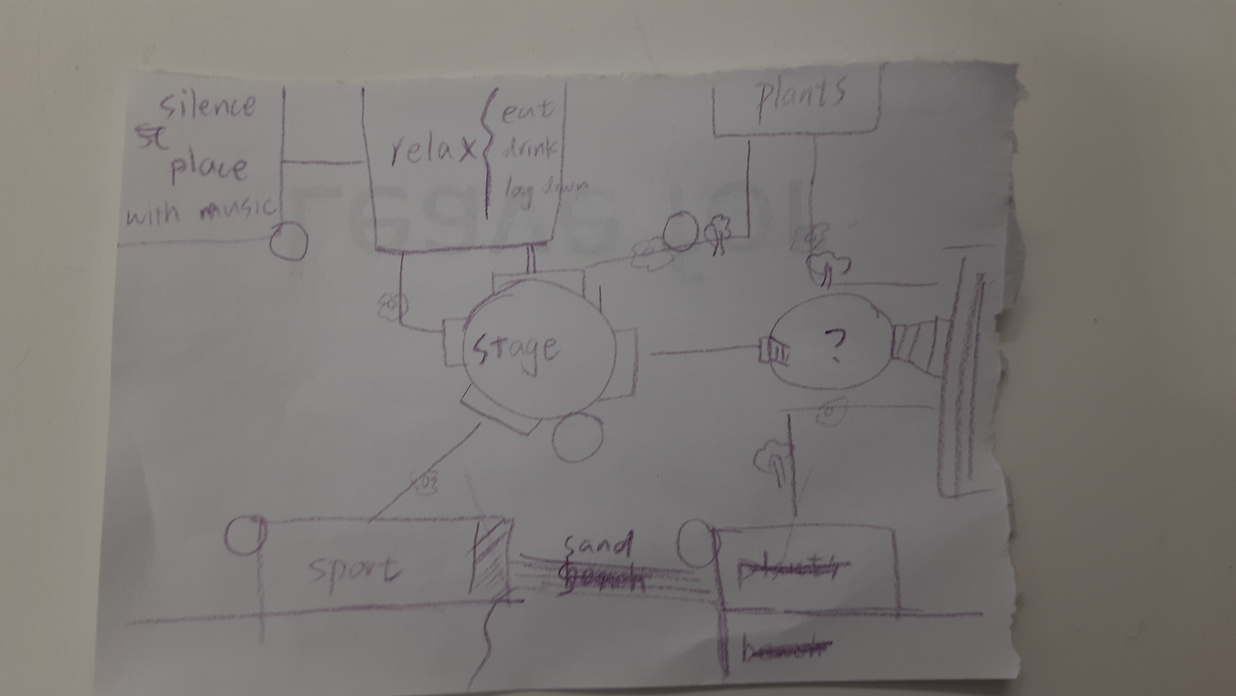 In wich our ideas about a place to relax, surrounded by nature, sport, where we can come and sit together, work together and have open performances for all students of all disciplines are combined and realized.