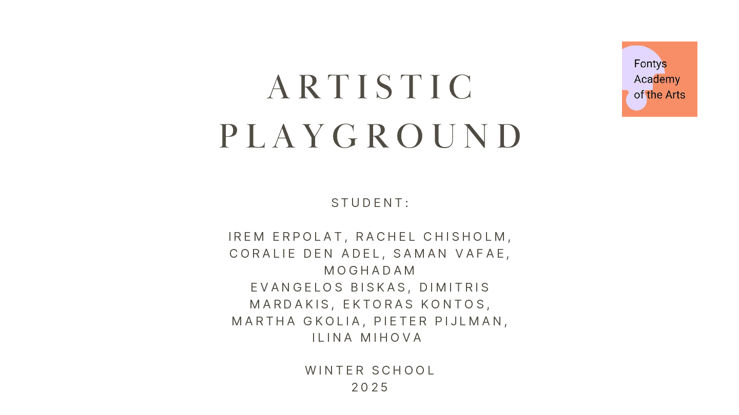 Masterstudents from all disciplines will work together in this years ‘Winterschool’ at Fontys Academy of the Arts, creating your own Artistic Learning Space. This space is not just a physical location, it should be a dynamic environment where creativity, collaboration, and learning thrive. How does such a space look like? Smells like? Feels like? Inspired by concepts like the idea of the Third Place (Oldenburg, 1991), the Relational Space (Leibnitz, 1675) or the Pedagogical Space (Vigil, 2022), your challenge is to design a space that fosters meaningful interactions and innovative ideas for FAA.