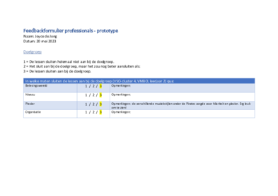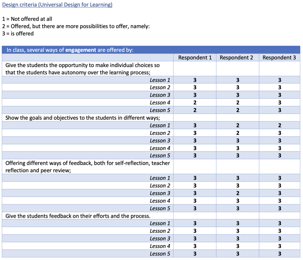 From the observation of the respondents , it appears that the design criteria are well met in the design. The respondents specifically name one student who cannot always keep up with the lesson in her own way. With this student it is interesting to look further at what should change in the lesson in order to be able to meet her learning needs. No suggestions are given by the respondents for this.