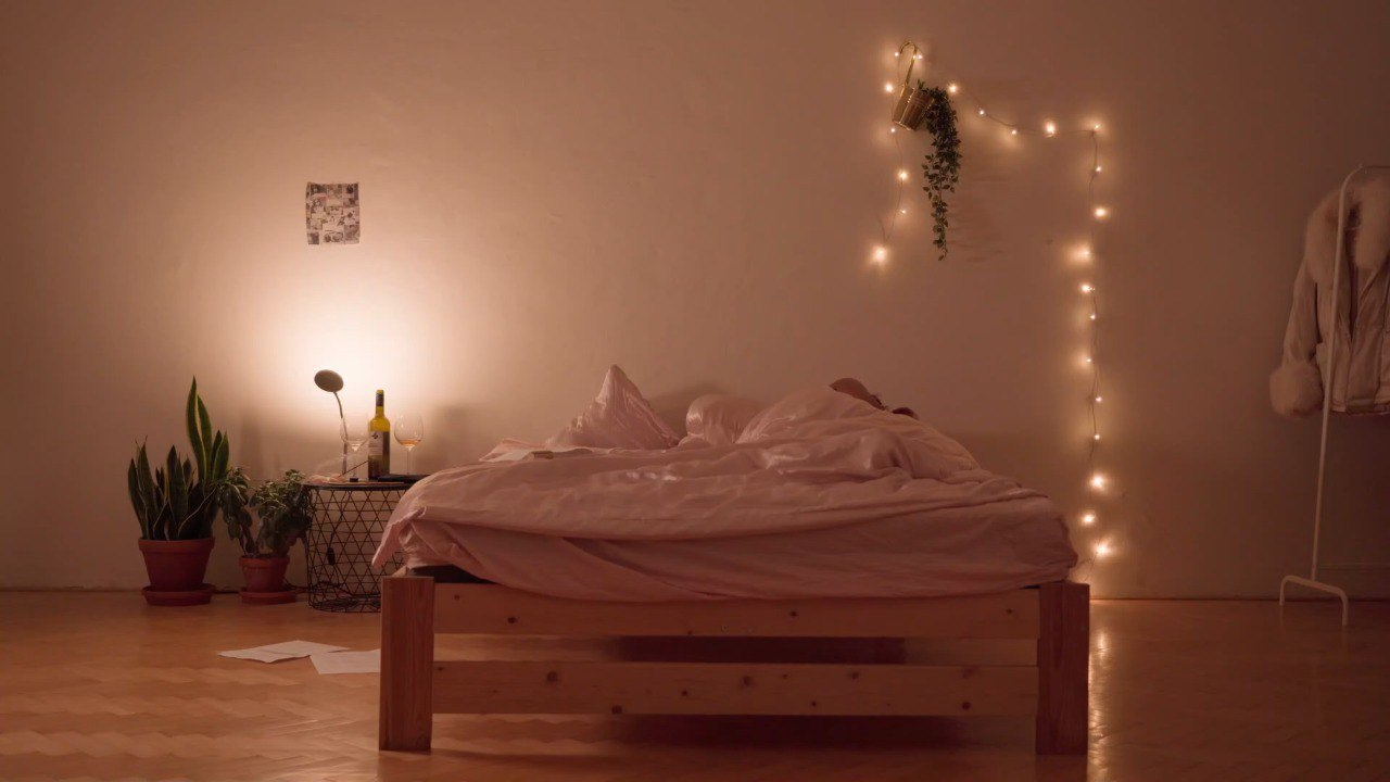 inner life. The film, which is entirely set in a dark bedroom at night, contrasts the