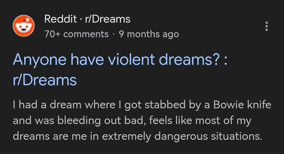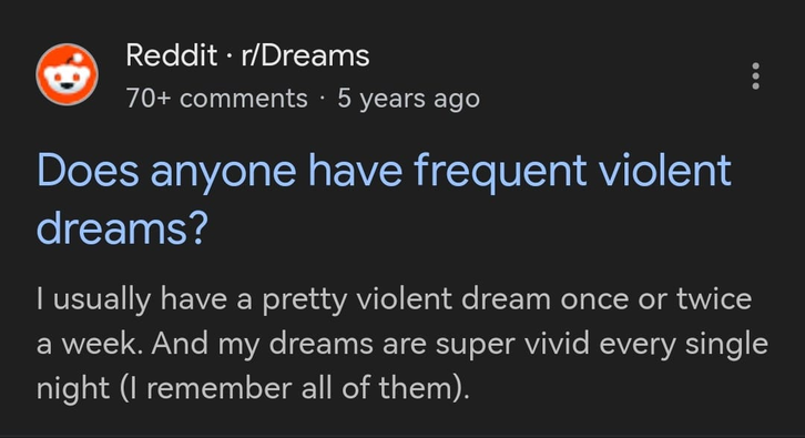 TW: GRAPHIC DEPICTIONS, DISCRIPTIONS AND PICTURES OF VIOLENT DREAMS OR RELATED TO NIGHTMARES