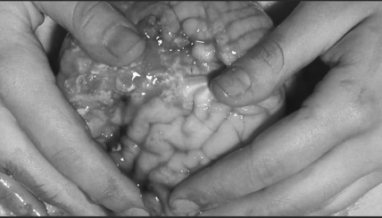 Soms verplaats ik me daarna weer terug in die andere versie, die dan dus een ijzeren pin heeft in de hersenen, en dan ben ik heel gelukkig, en voel ik een vredige rust van die “hersendood”.