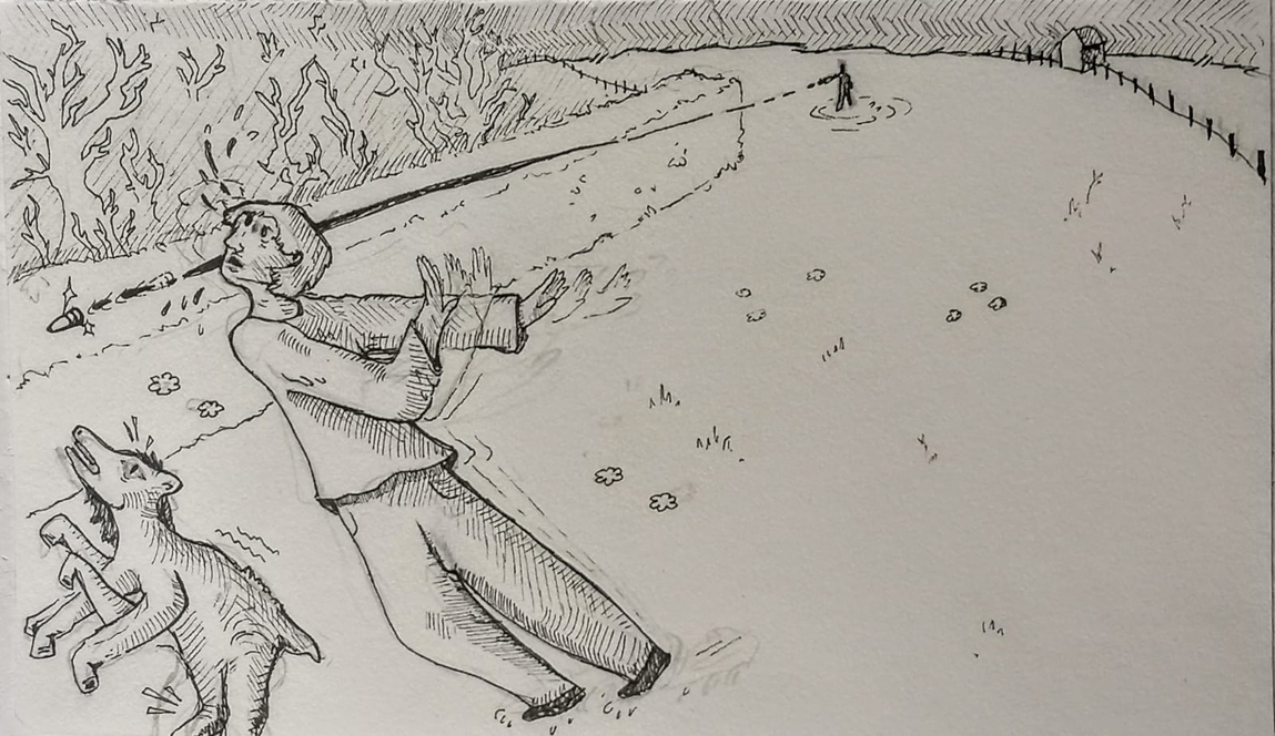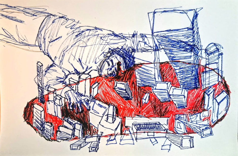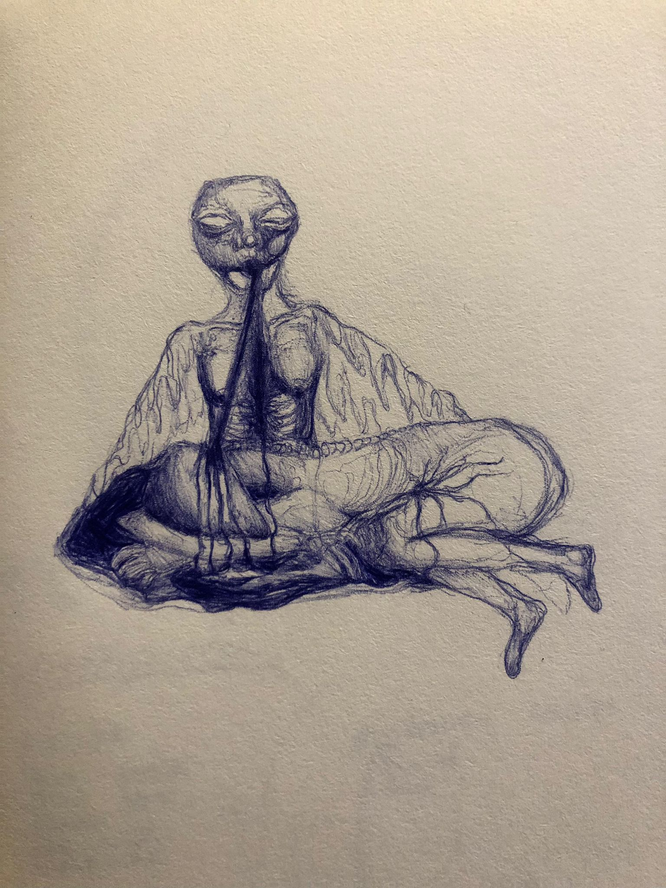 This drawing is based on my dream I wrote down. I gave the story to one of my friends, and talented illustrator (David Sabelis) and asked him to make a sketch of it.