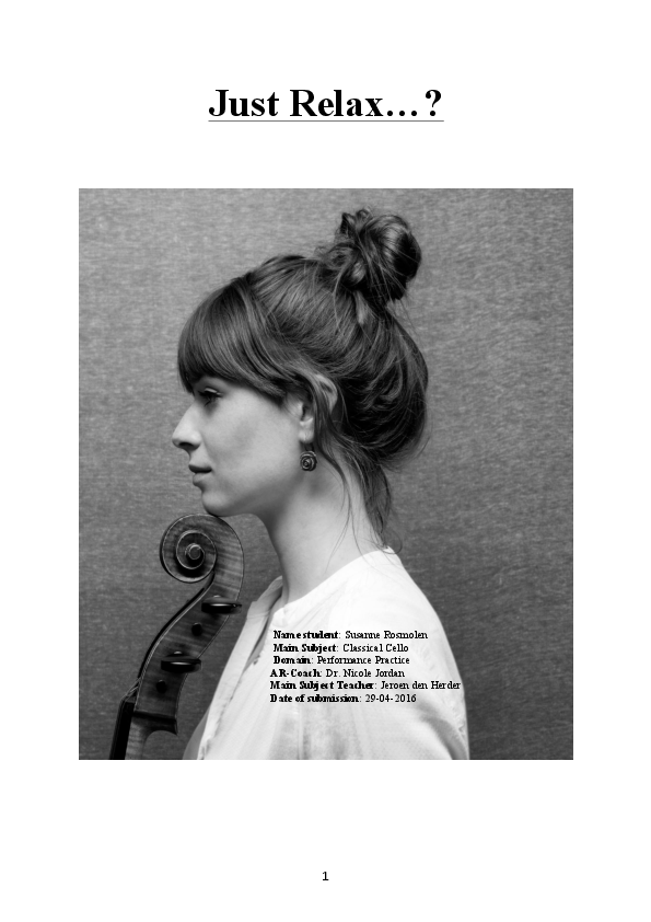 As musicians, we are always searching for new ways to improve our performance. We spend hours practicing to develop our technical skills. We read books and listen to music to get a better understanding of the music we’re playing. We search for interesting pieces and techniques, which can help us to refresh our view on music. At the beginning of my master’s degree studies, I wondered myself: What do I want to learn? What do I aim for? What is my dream? My dream was to play music without any physical limitations. On stage I aimed to feel free in my motions. I wanted to be able to make any musical decision, without experiencing any blockage in my body. Sometimes on stage I felt that I could not express myself the way I wanted to, because of physical tension in my body. I felt pain or cramping in my hands, arm and shoulders, my breath was restricted and my body had difficulties finding the right balance. A piece in which all of these elements were very present was ‘Lamentatio’ by Giovanni Sollima. Sollima is an Italian cellist and composer. His music is influenced by different musical styles such as classical, pop, rock, jazz and Mediterranean folk. The character of the piece ‘Lamenatio’ is quite wild and powerful, which caused in me a lot of physical tension. The first time I performed the piece was during my final bachelor’s exam at the Prins Claus Conservatoire (Groningen) in June 2014. During this performance I had difficulties finishing the piece because my muscles became sore. In order to remedy this problem, I felt I needed to get deeper insight of the cause of this physical pain and begin to understand the term “tension”.