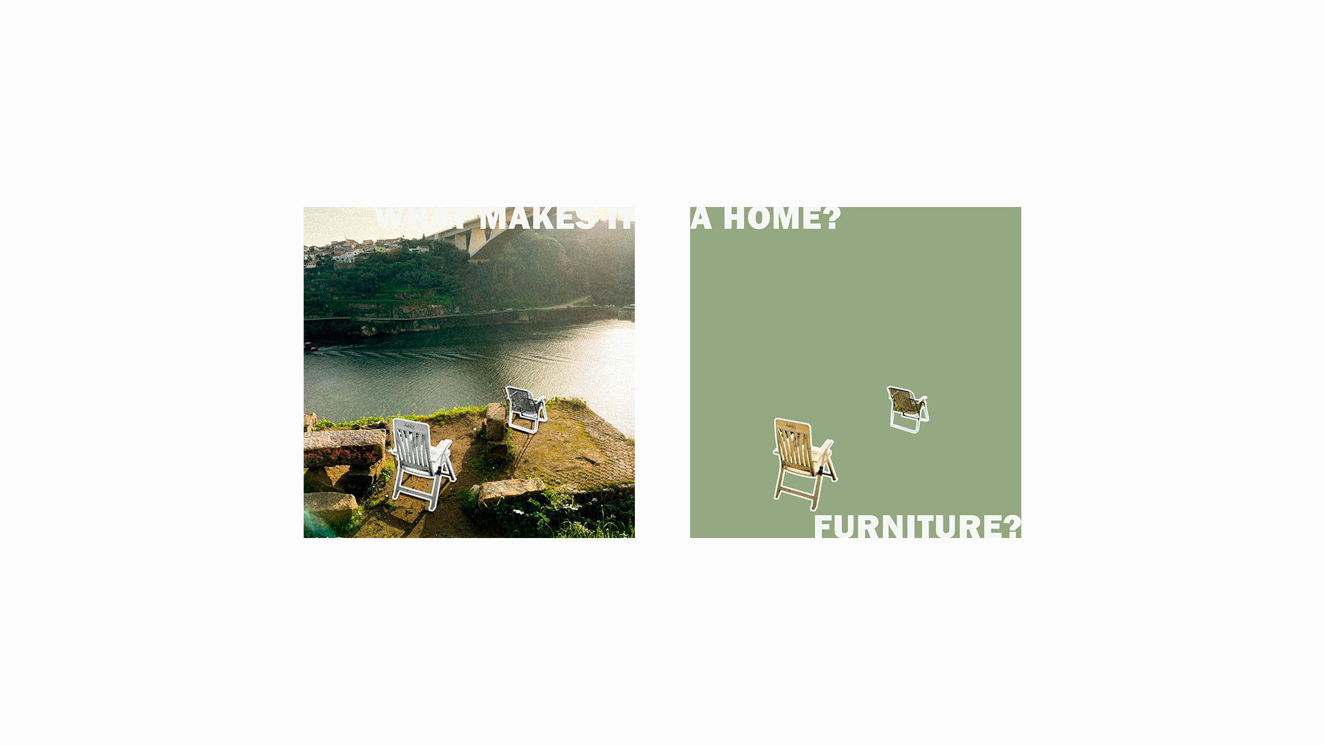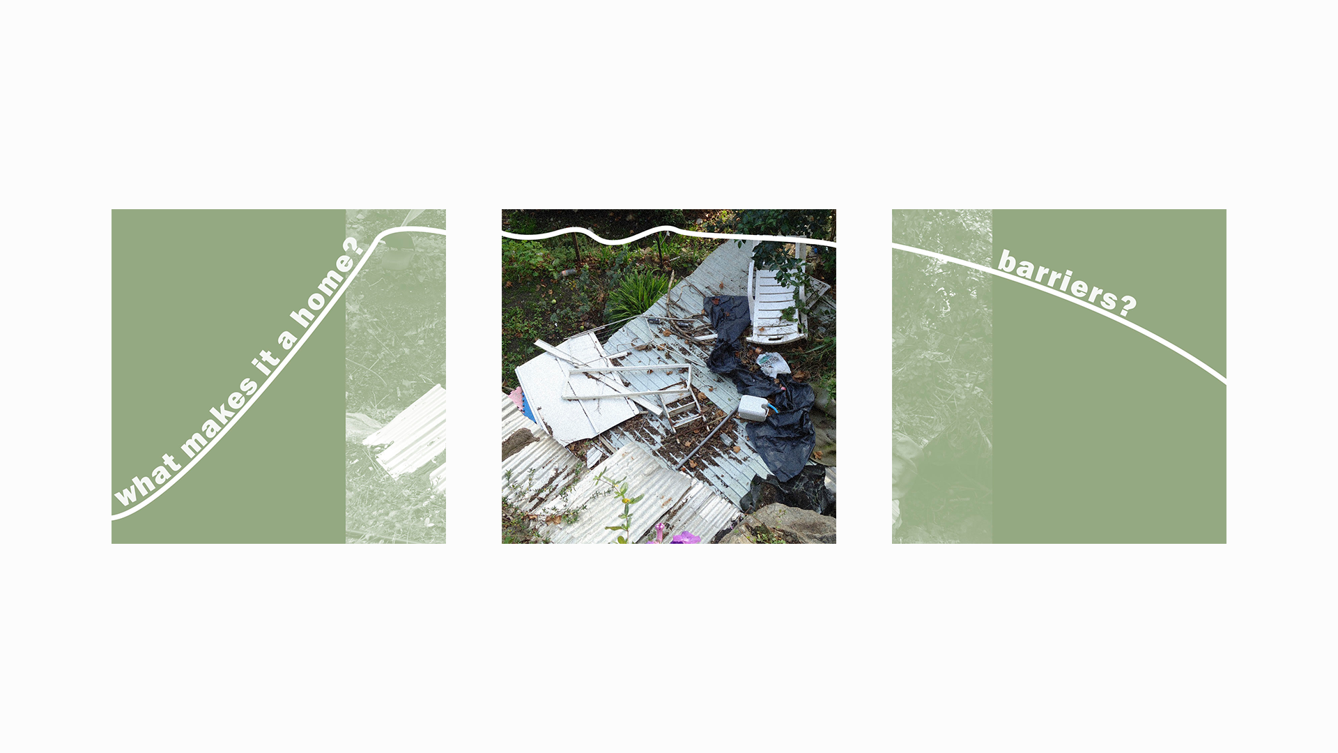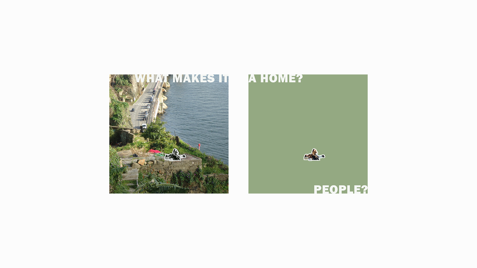 "What makes it a home?" is a question raised during a visit to an occupied space in Fontainhas, Porto (Portugal), where people have practiced urban agriculture and also kept a living space — most of these people are imigrants, far away from their original home and with no affordable place to live in a new country. Observing their space, although a precarious or a transitory way of living, it's possible to notice the human traces between the ruins and vegetation, as well as the care that's put into it. Which brings into reflection, can you bring the "home feeling" to any place, and what can carry this feeling: people, decorations, furniture, toys; or, maybe, it's simply the sentiment of care or of identity.