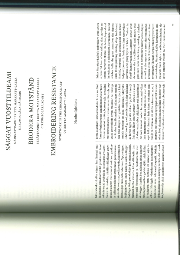 - Joar Nango, Taqralik Partrigde, Jocelyn Piirainen, Rafico Ruiz (eds.) 2024: Ruovttu Guvlui/Towards Home – Inuit & Sámi Placemaking, Valiz (Amsterdam) x Canadian Centre for Architecture (Montreal)