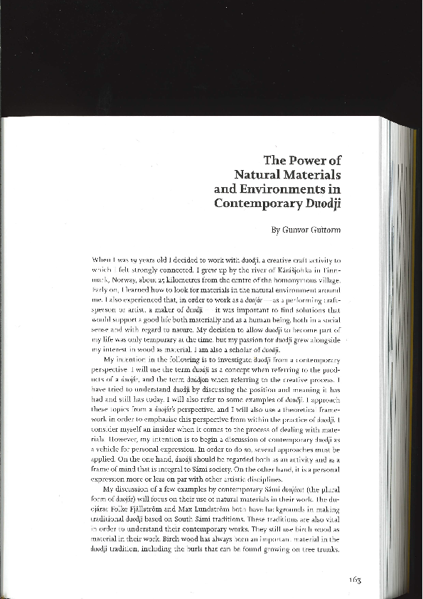 - Guttorm, Gunvor 2017: The Power of Natural materials and Environments in Contemporary Duodji (See PDF below)