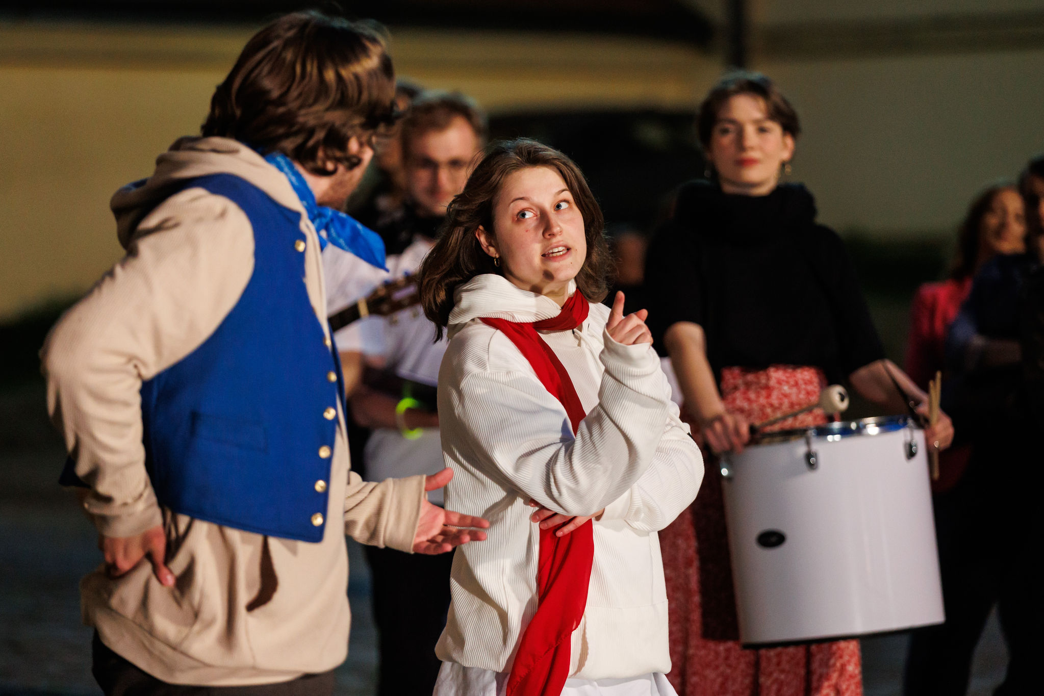Další režijní princip, který jsme u obou inscenací používali, se zaměřuje na vytváření scénických obrazů inspirovaných uměním a vizuálními prvky doby, ze které dílo pochází. Tento režijní přístup umožňuje propojení historického a náboženského kontextu se současností prostřednictvím známých vizuálních a kulturních referencí, což divákům poskytuje hlubší a přístupnější divadelní zážitek.
