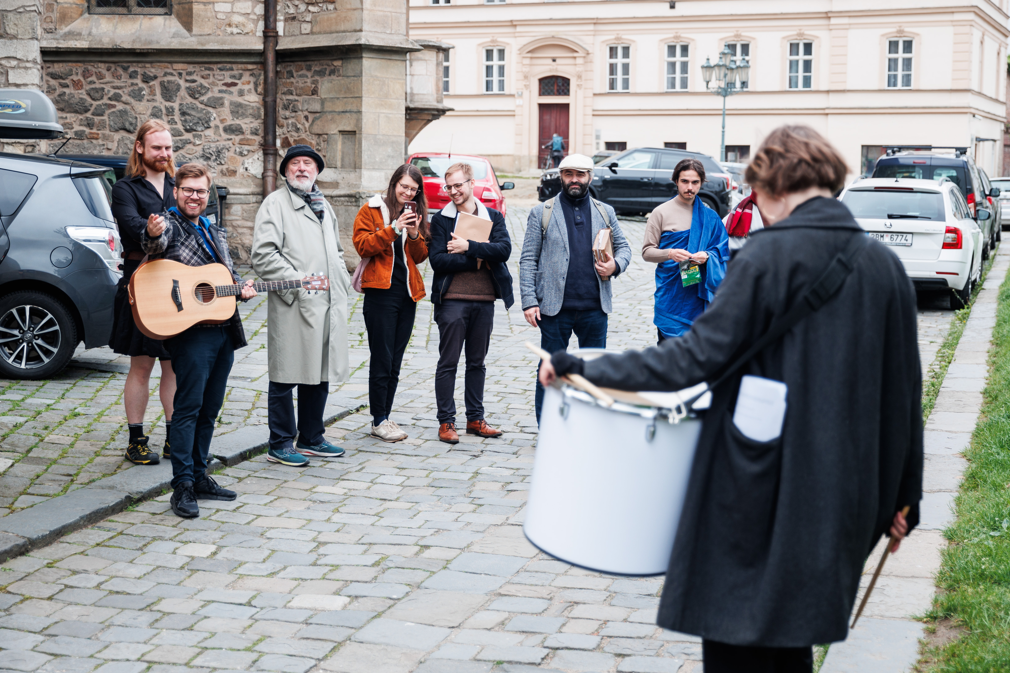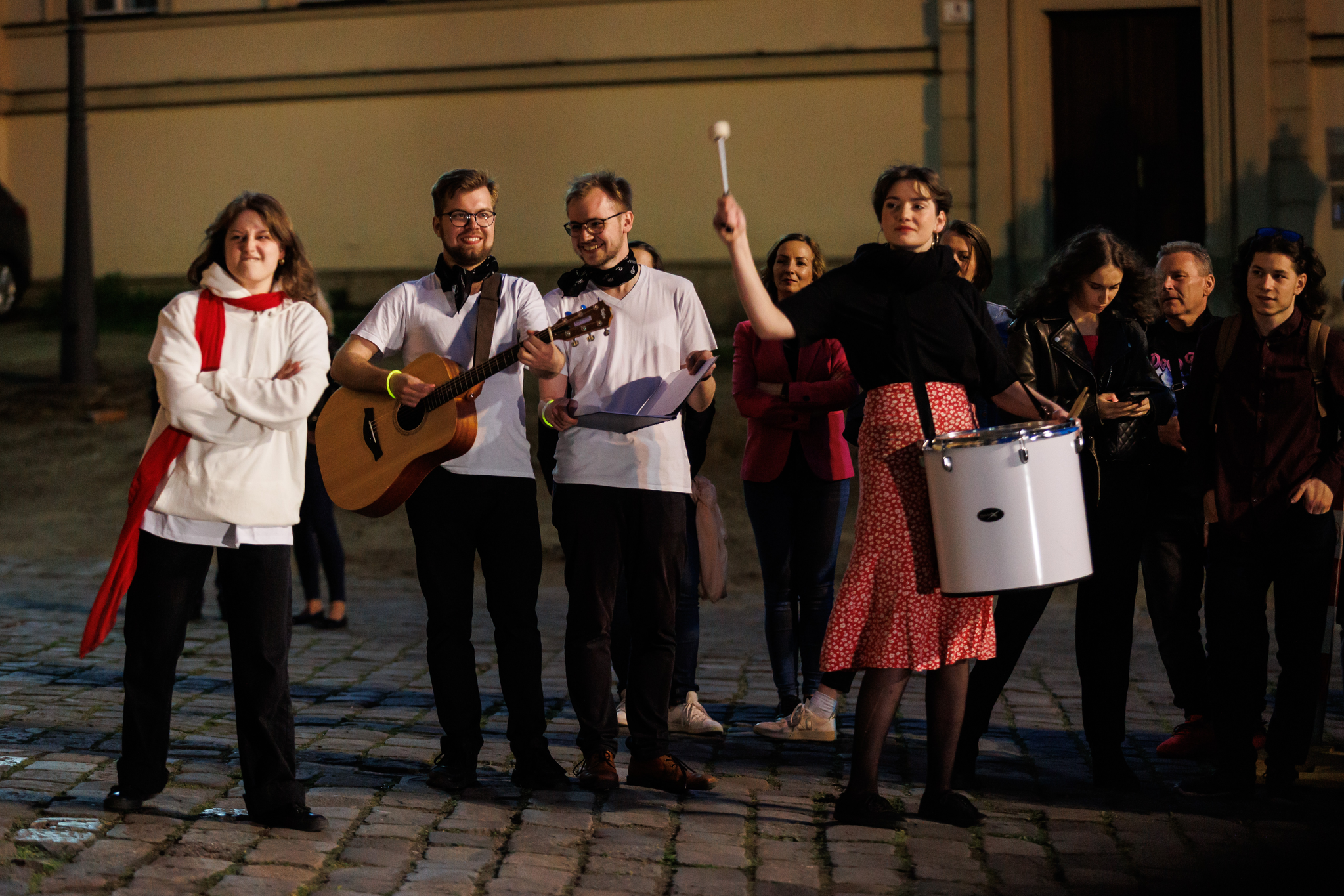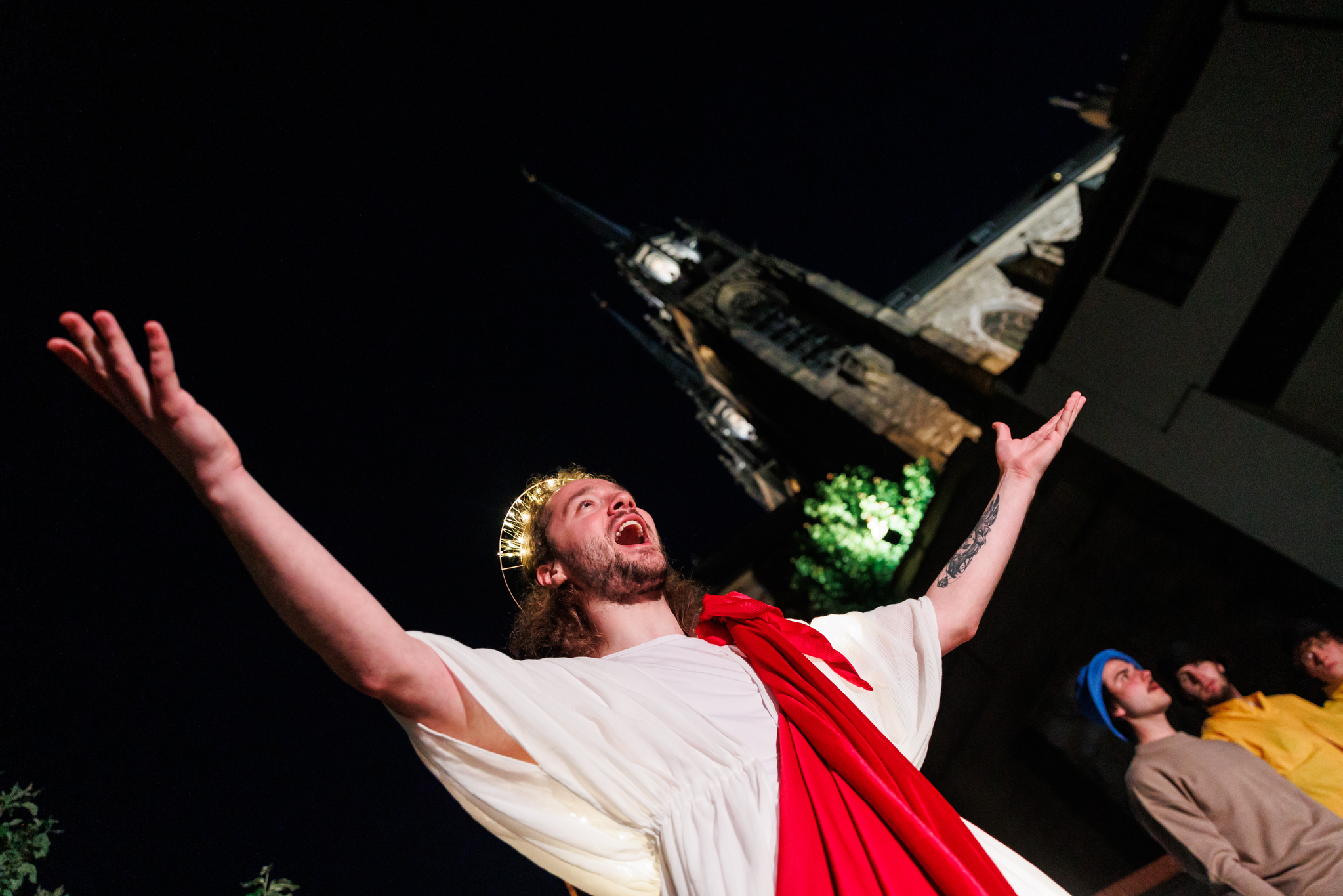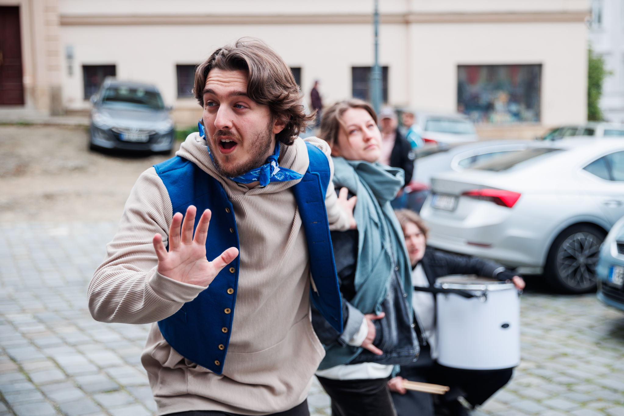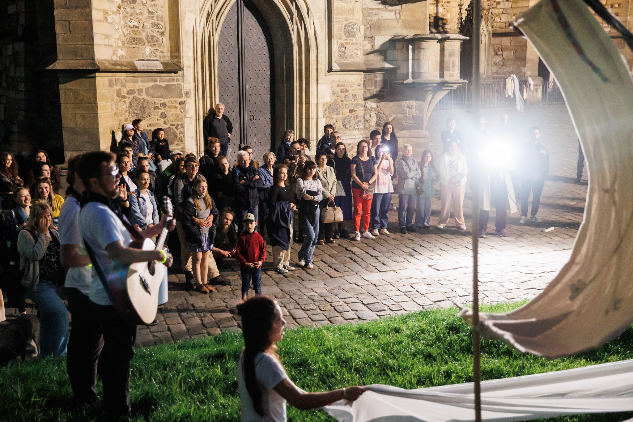 Pouliční divadlo studentů Divadelní fakulty JAMU okolo katedrály svatých Petra a Pavla 20. 5. 2023 v rámci Brněnské muzejní noci ve spolupráci s Diecézním muzeem na motivy biblických i lidových příběhů.