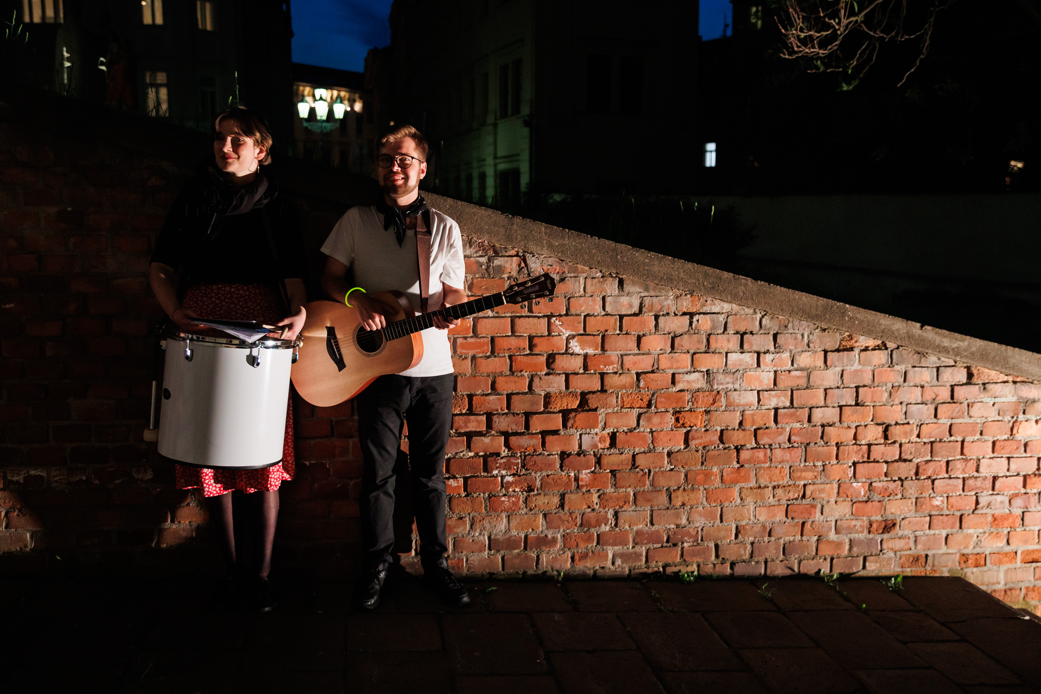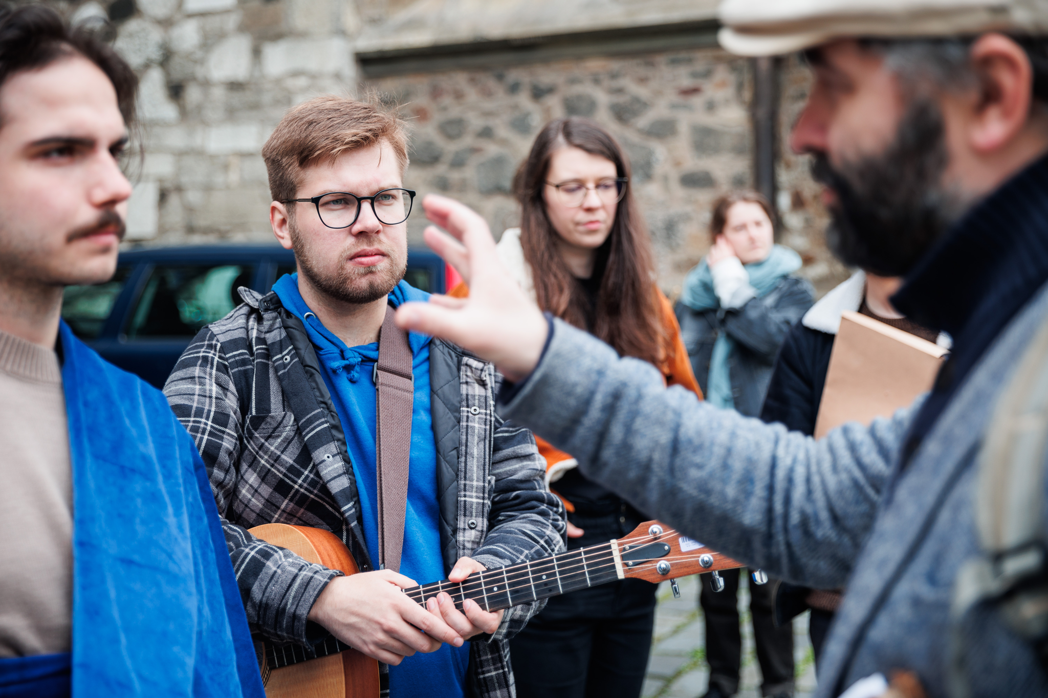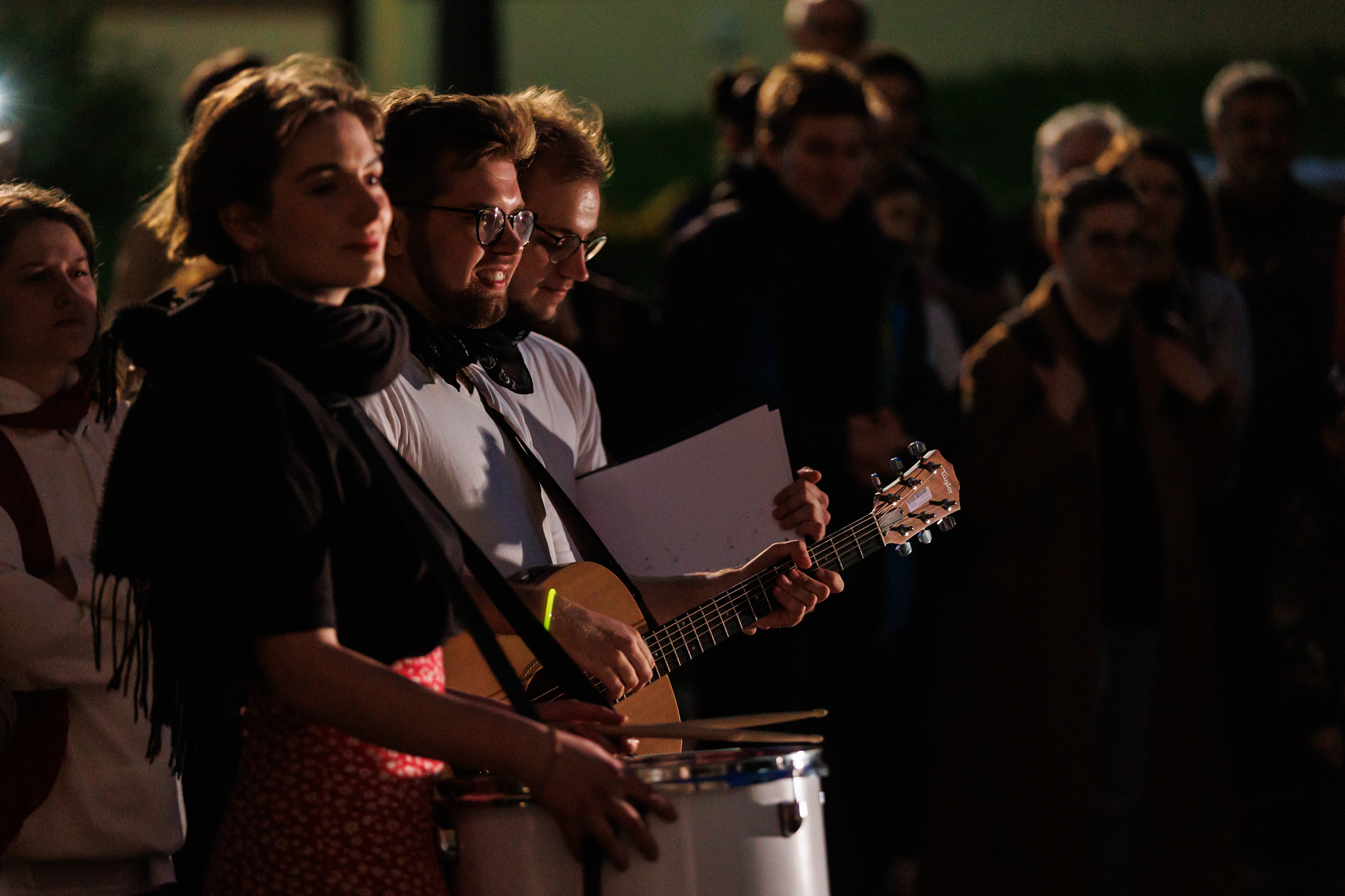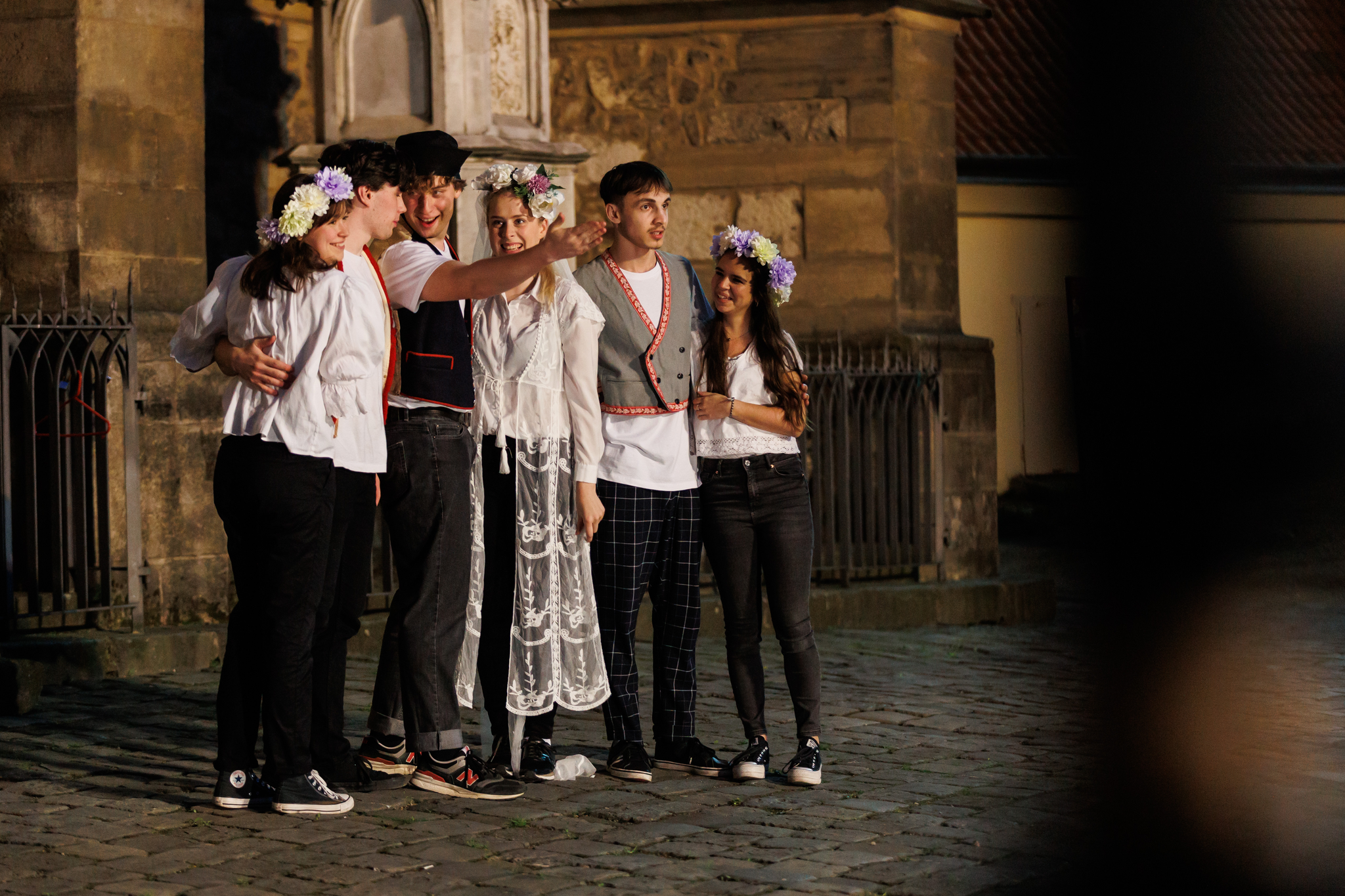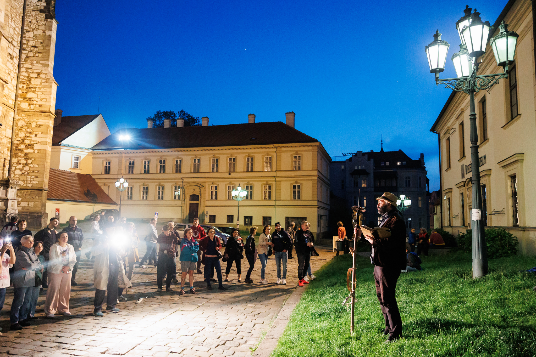 Pouliční divadlo studentů Divadelní fakulty JAMU okolo katedrály svatých Petra a Pavla 20. 5. 2023 v rámci Brněnské muzejní noci ve spolupráci s Diecézním muzeem na motivy biblických i lidových příběhů.